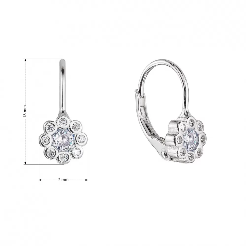 Strieborné náušnice detské kvietky so zirkónmi 11476.1 crystal