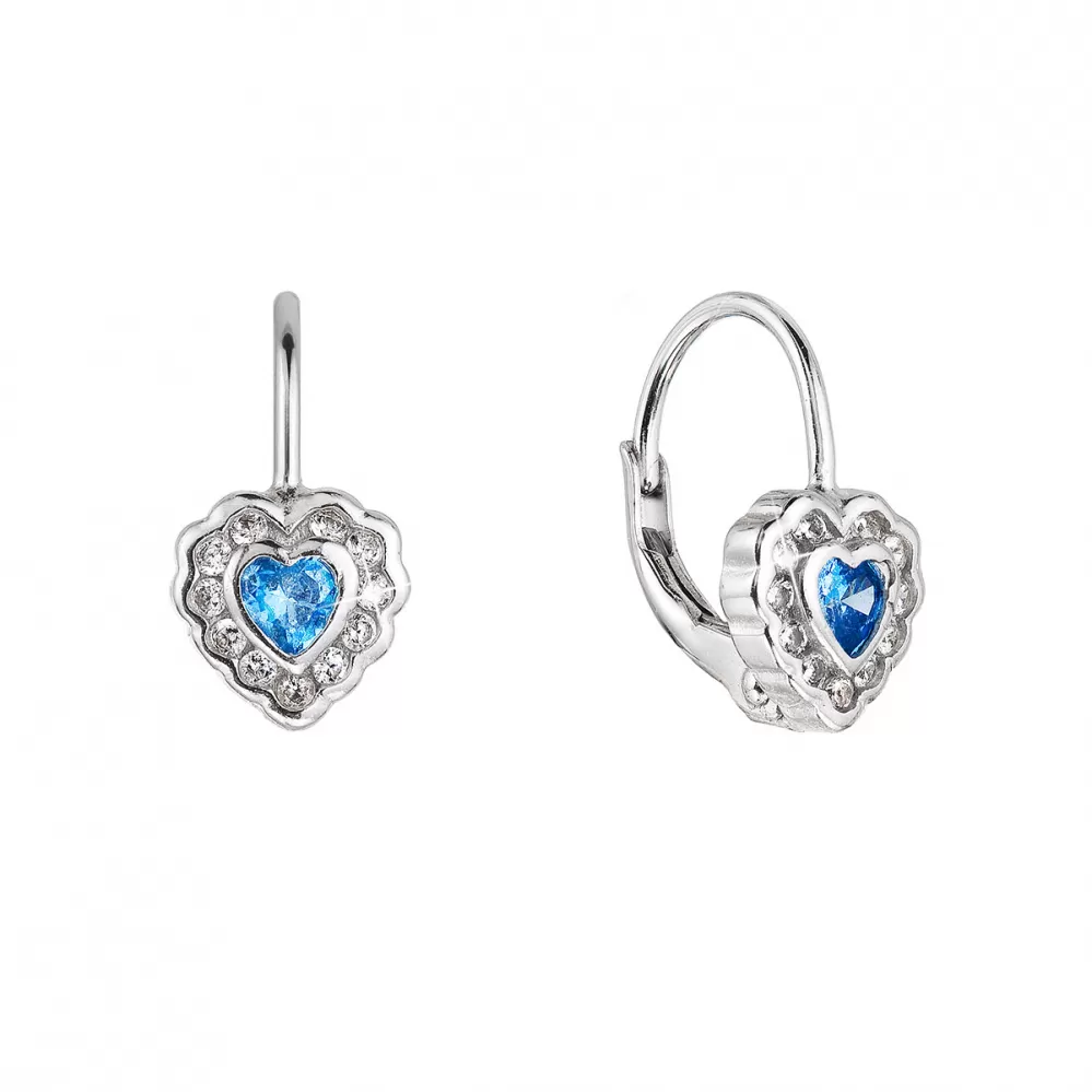 Strieborné náušnice detské srdiečka so zirkónmi 11473.3 aqua