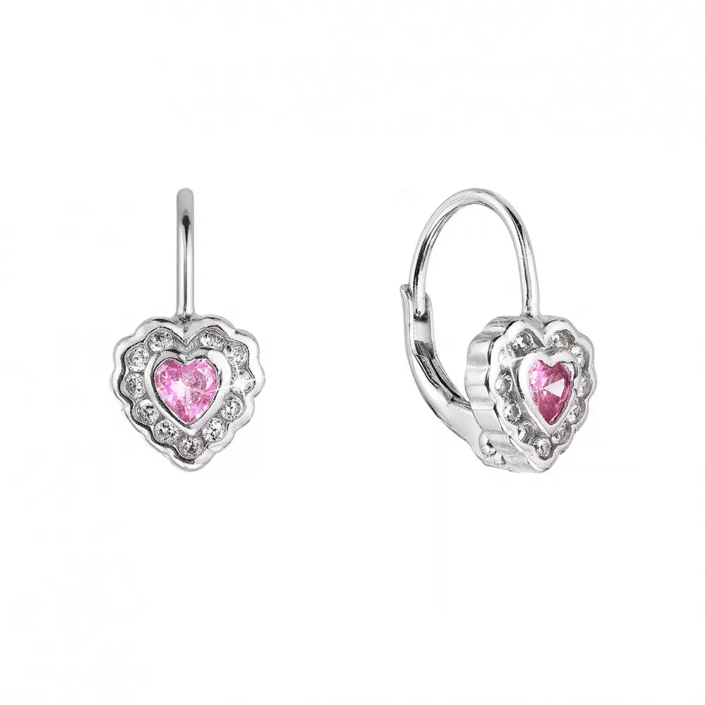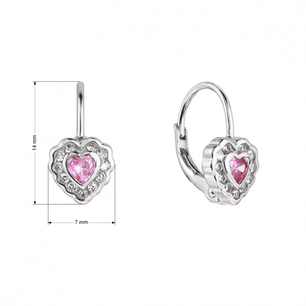 Strieborné náušnice detské srdiečka so zirkónmi 11473.3 rose