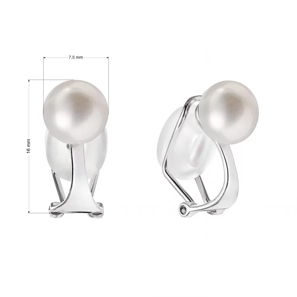 Strieborné náušnice s bielou riečnou perlou. Náušnice 21081.1 sú vyrobené zo striebra o rýdzosti 925/1000 a zaujmú predovšetkým vďaka riečnej perle kvality AA v bielej farbe. Šperk neobsahuje prídavok niklu, a tak ho môžu nosiť aj ľudia náchylní na alergické reakcie. Náušnice majú zapínanie na klips, vďaka ktorému ich môžu nosiť ženy, ktoré nemajú prepichnuté uši.