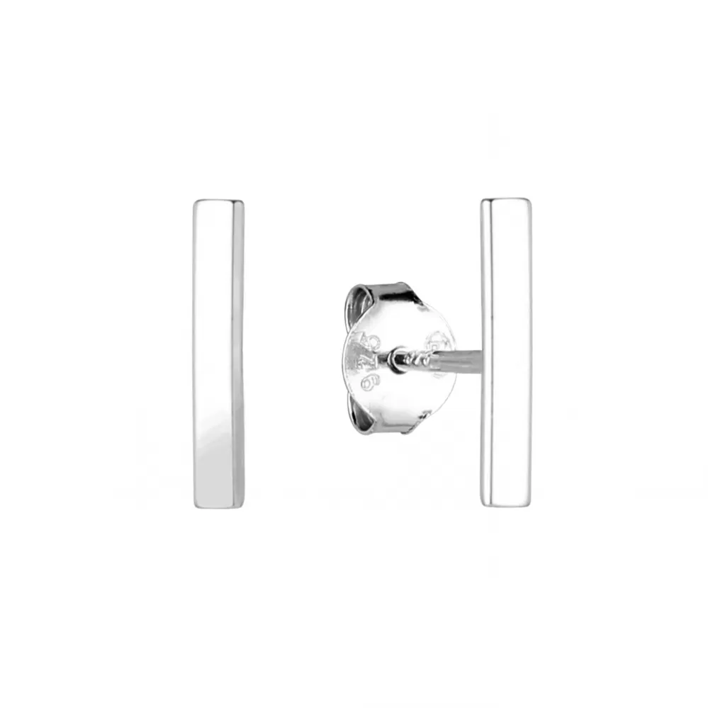 Minimalistické jednoduché strieborné náušnice v tvare úzkeho obdĺžnika predstavujú moderný a elegantný šperk, ktorý je dokonalým príkladom krásy v jednoduchosti.