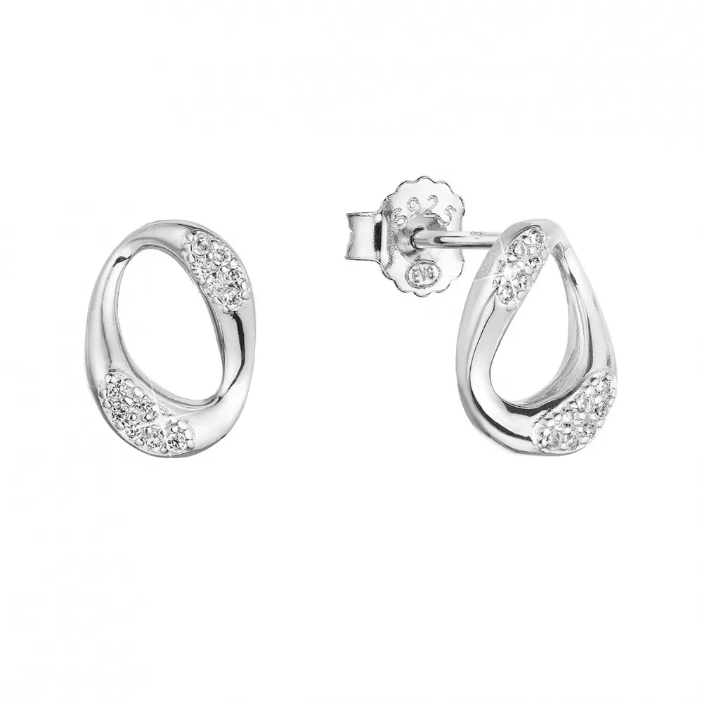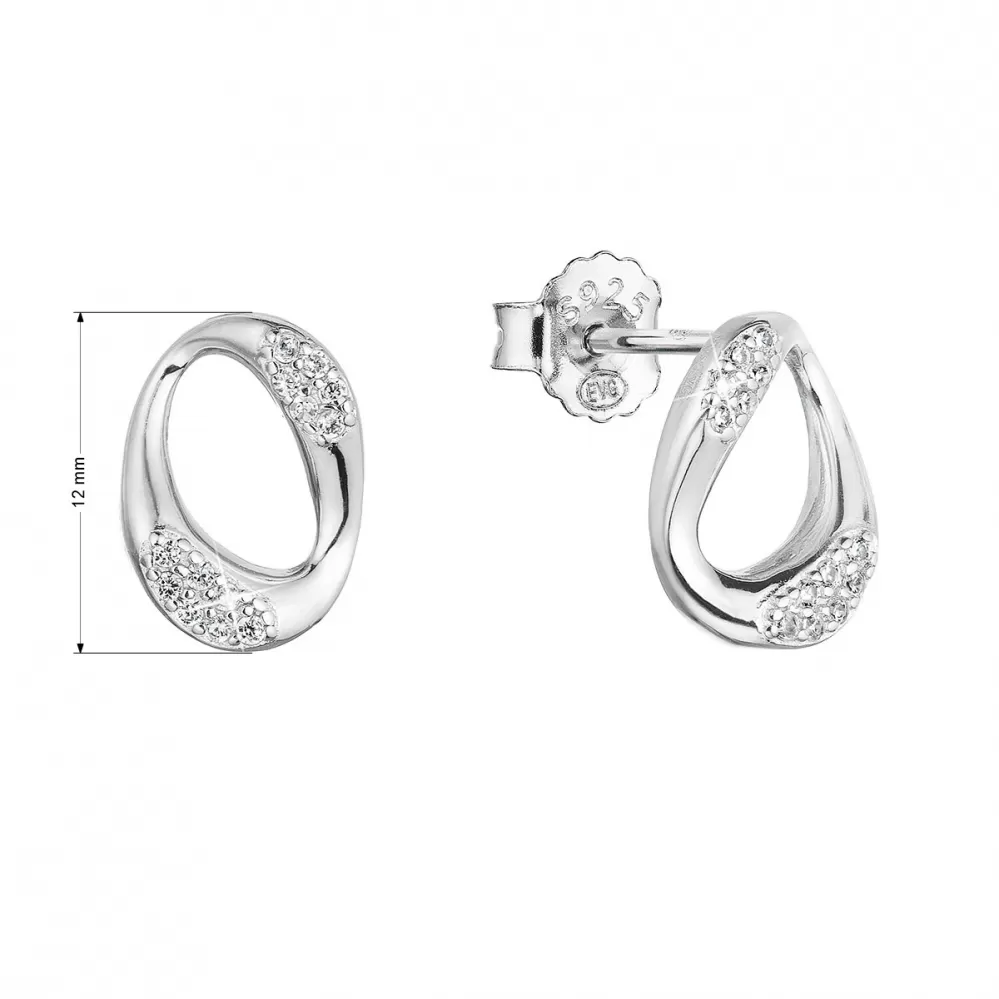 Strieborné náušnice v tvare oválov dekorované trblietavými bielymi zirkónmi zaujmú na prvý pohľad.