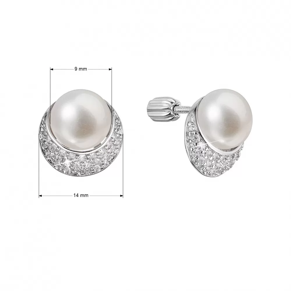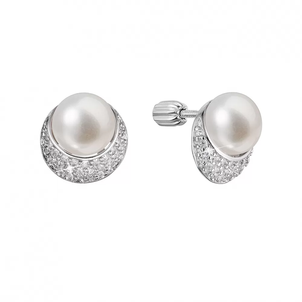 Strieborné náušnice kôstky polmesiac s riečnou perlou a zirkónmi bielej 21099.1B
