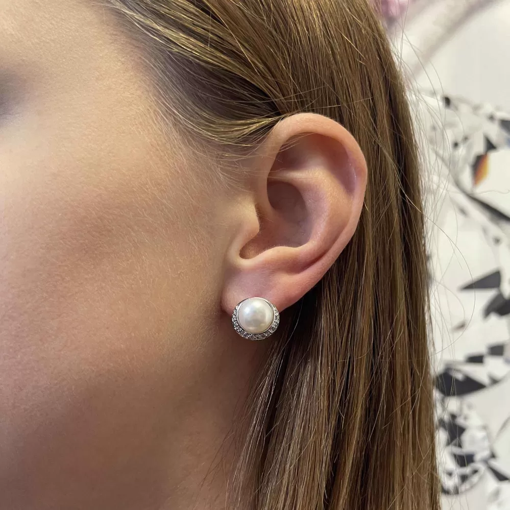 Strieborné náušnice sú ako polmesiac, kde žiari zirkóny a biela riečna perla zakrýva zvyšok mesiaca. Sú výrazne zdobené a neprehliadnuteľné.