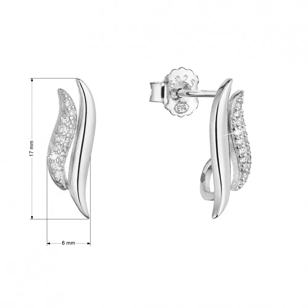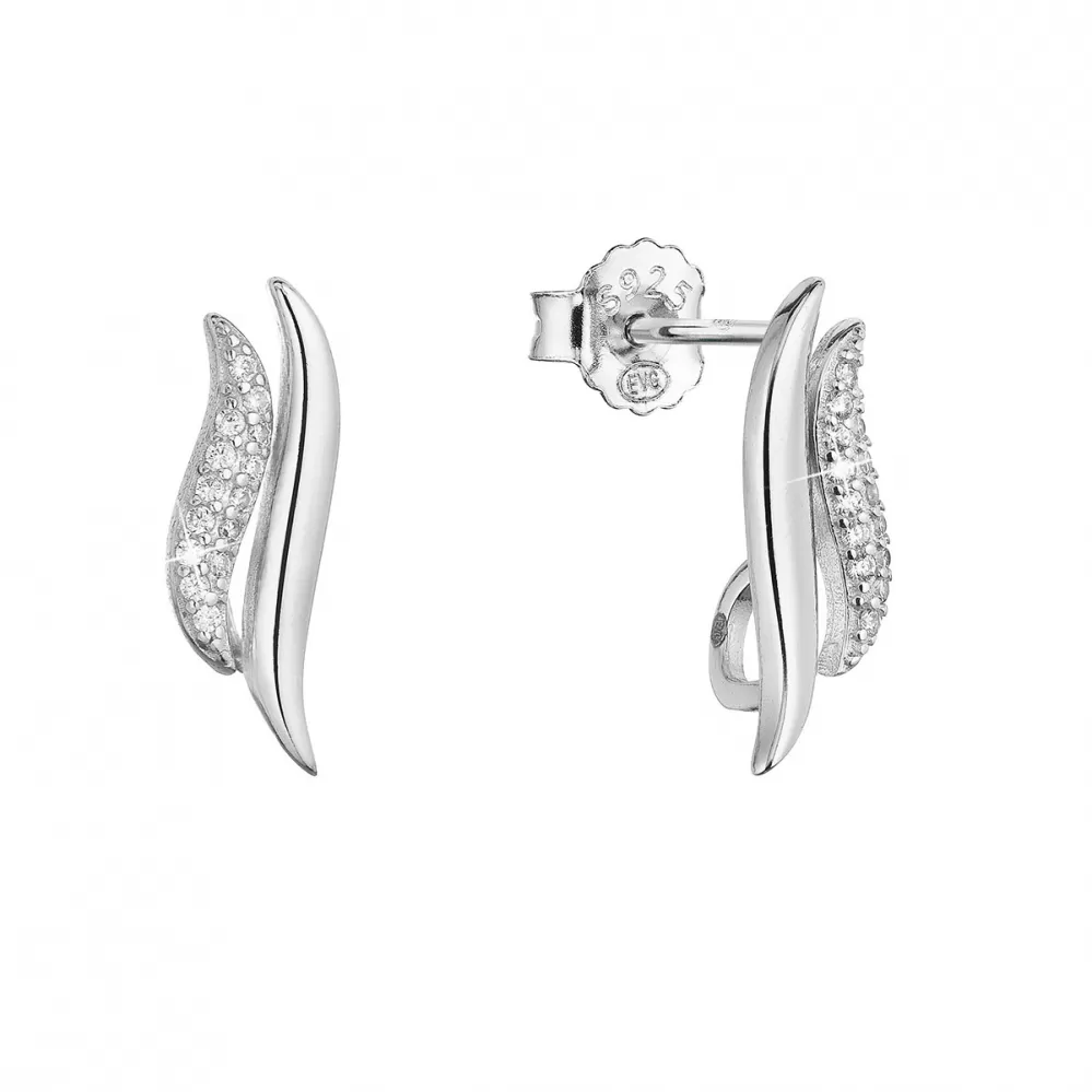 Nežné ladné vlnky sú strieborné náušnice v kombinácii trblietavých zirkónov a lesklého striebra