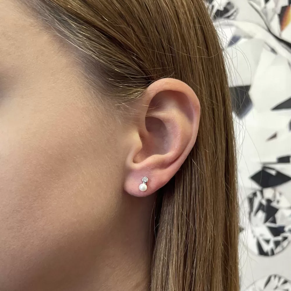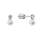 Strieborné náušnice s bielou riečnou perlou a trblietavým zirkónom sú jednoduché a pritom dokážu rozžiariť Váš všedný deň.