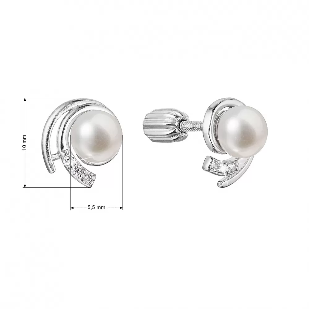 Strieborné náušnice kôstky s riečnou perlou a zirkónmi vír biely 21091.1B