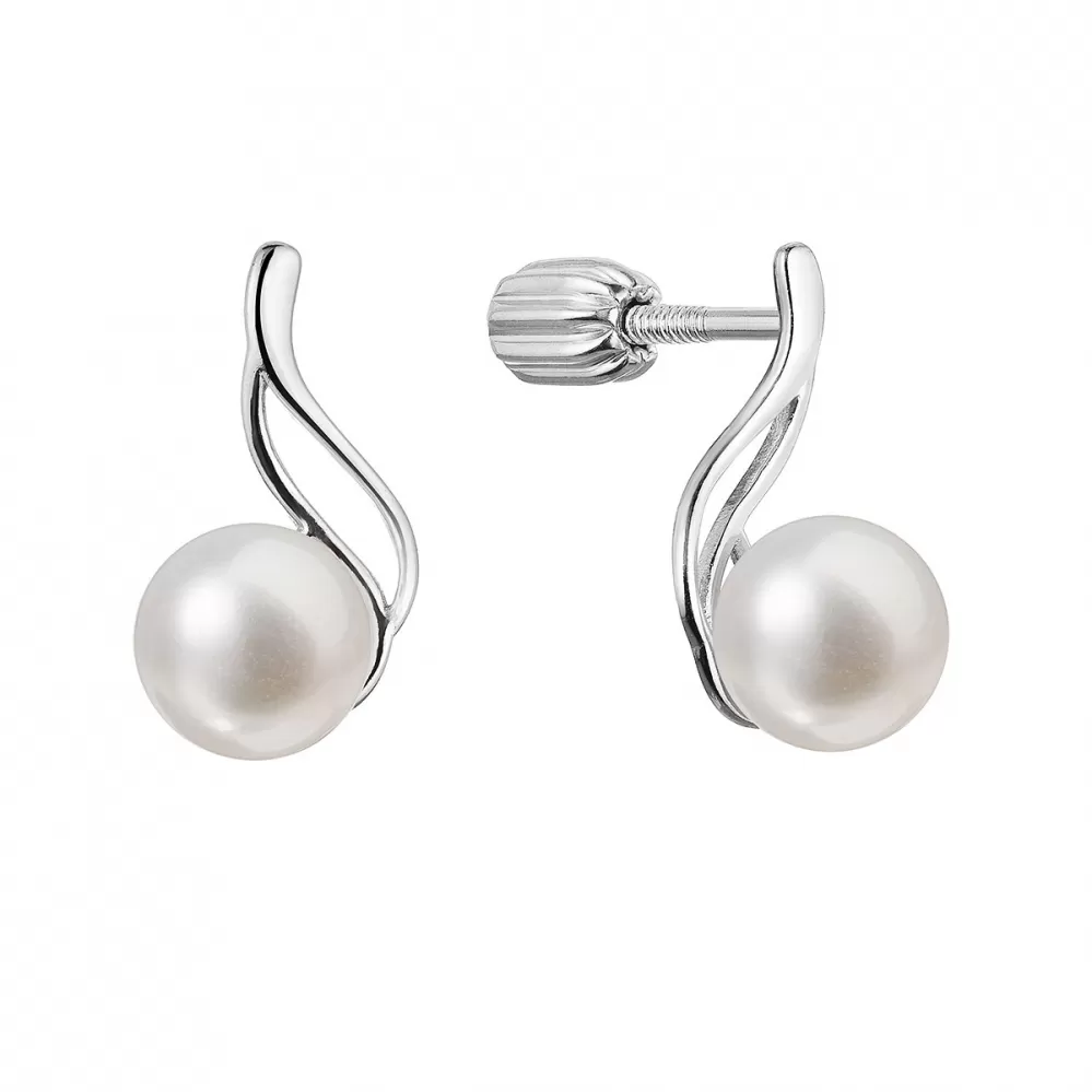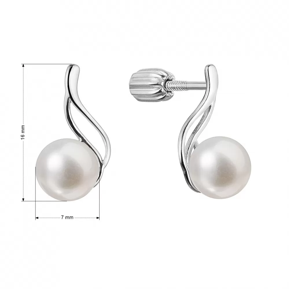 Strieborné náušnice kôstky s riečnou perlou biela 21102.1B