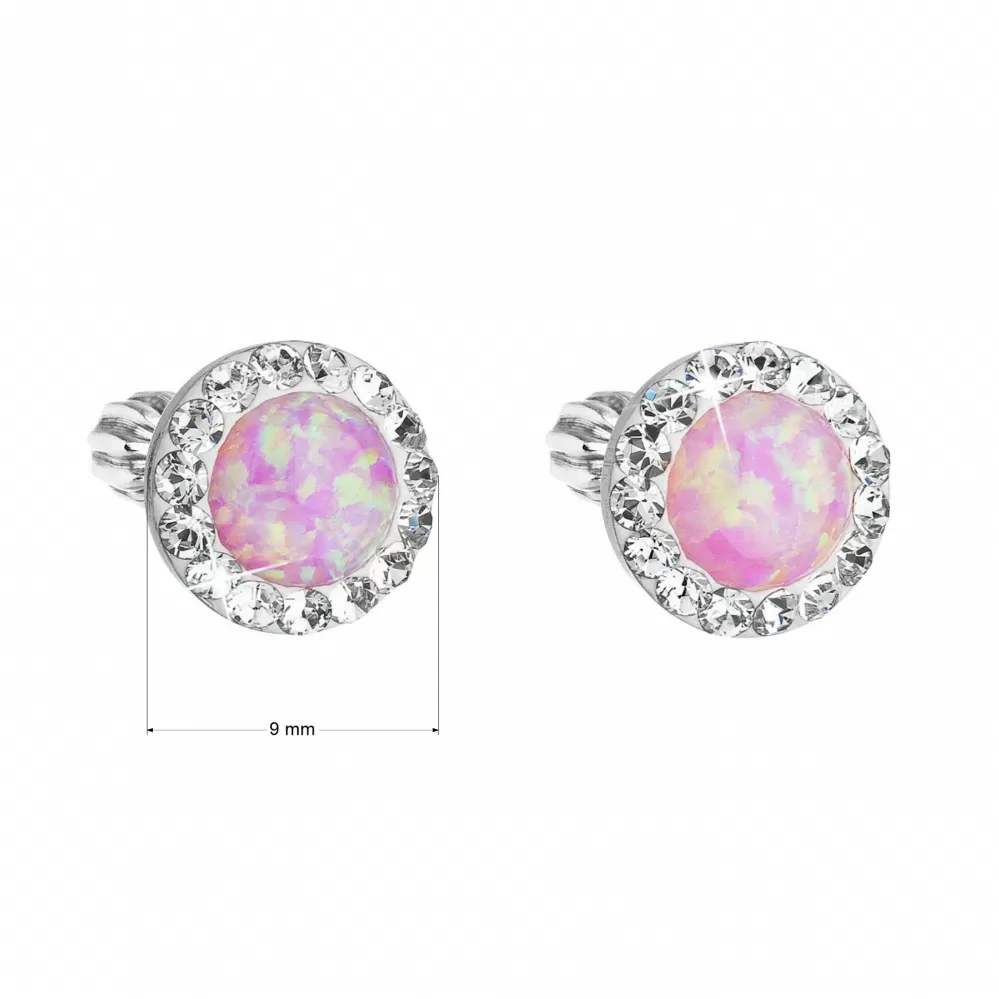 Parametre strieborných náušníc kôstok so syntetickým opálom a kryštálmi Preciosa ružové okrúhle 31317.1