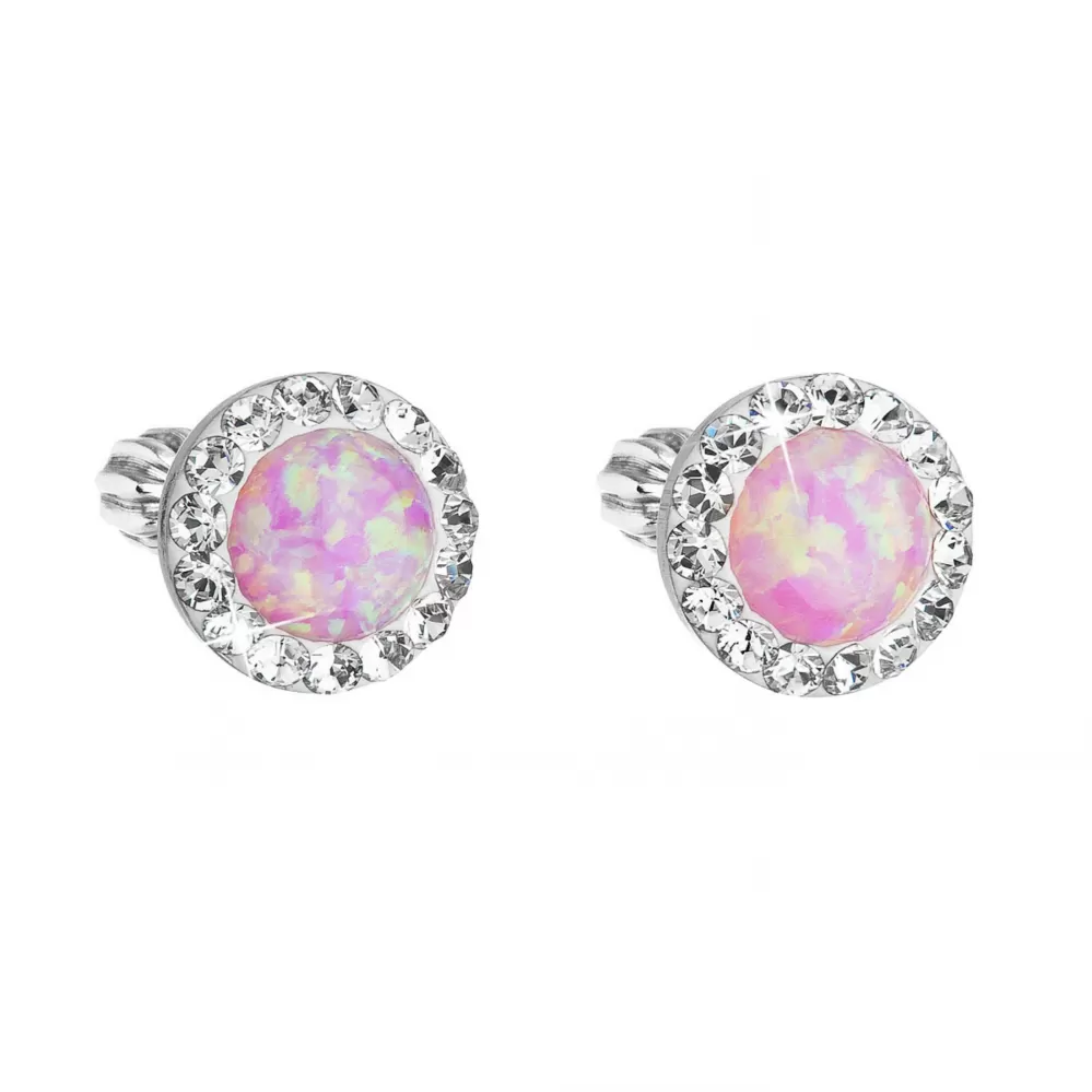 Náušnice typu kôstky 31317.1 sú vyrobené zo striebra rýdzosti 925/1000 vrátane povrchovej úpravy ródiom a je do nich zasadený okrúhly syntetický opál zdobený niekoľkými odtieňmi ružovej farby. Opál sa krásne trbliece a hádže rôzne farebné odlesky. Po obvode sú naviac okrúhle náušnice vysadené bielymi Preciosa kryštáliky. Náušnice sa zapínajú na balónik, ktorý ich spoľahlivo ochráni proti ich strate. Keďže do šperku nie je pridaný žiadny nikel, môžu ich s radosťou nosiť aj alergici.