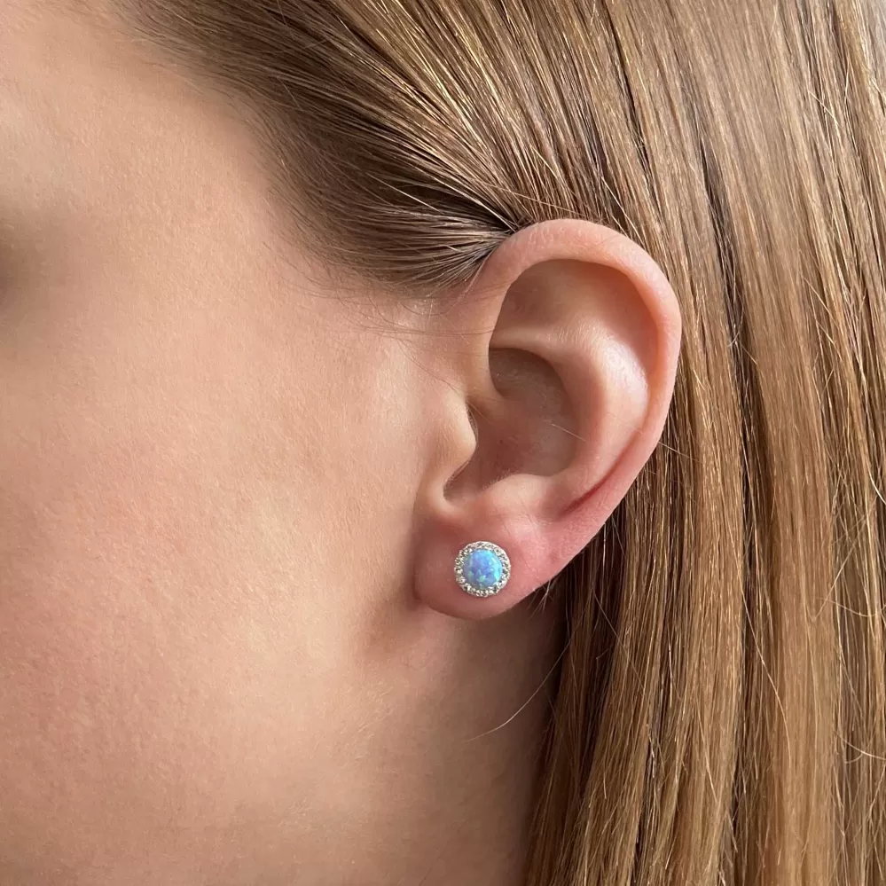 Náušnice typu kôstky 31317.1 sú vyrobené zo striebra rýdzosti 925/1000 vrátane povrchovej úpravy ródiom a je do nich zasadený okrúhly syntetický opál zdobený niekoľkými odtieňmi svetlo modrej farby. Opál sa krásne trbliece a hádže rôzne farebné odlesky. Po obvode sú naviac okrúhle náušnice vysadené bielymi Preciosa kryštáliky. Náušnice sa zapínajú na balónik, ktorý ich spoľahlivo ochráni proti ich strate. Keďže do šperku nie je pridaný žiadny nikel, môžu ich s radosťou nosiť aj alergici.