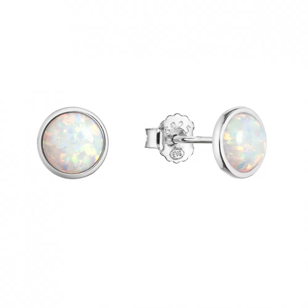 Strieborné náušnice kôstky so syntetickým opálom biele 11464.1 white