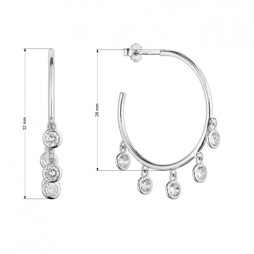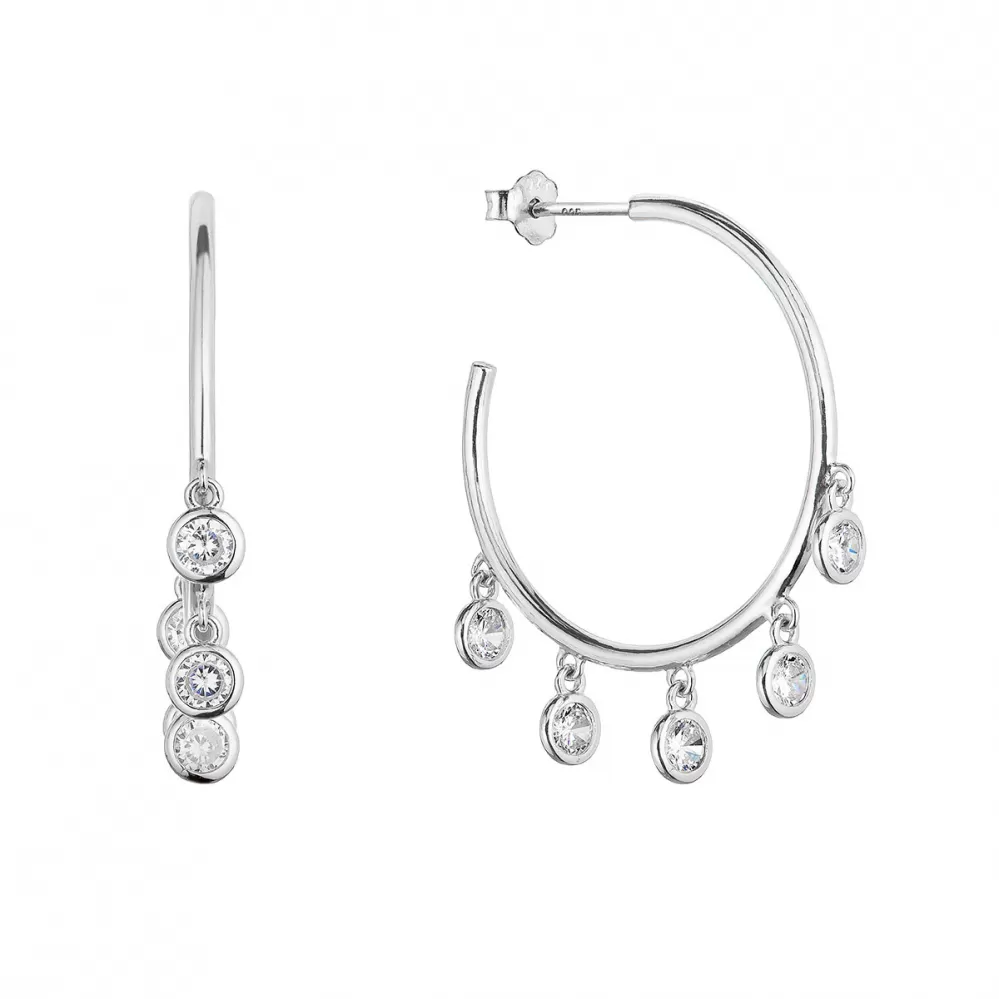 Strieborné náušnice kruhy so zavesenými zirkónmi bielej 11482.1