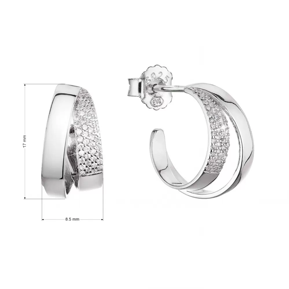 Strieborné náušnice kruhy so zirkónmi v bielej farbe 11441.1