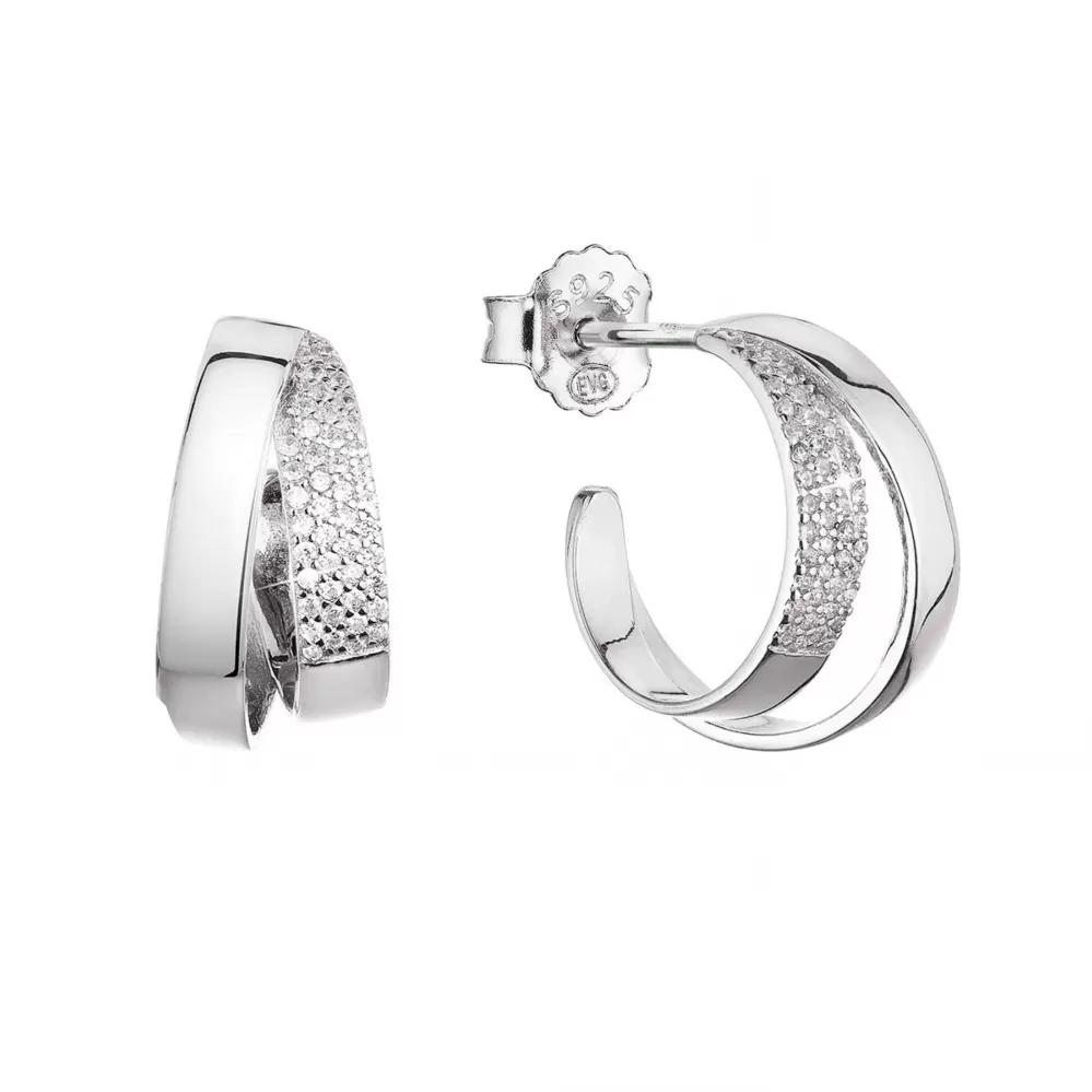 Výrazné náušnice bohato vysadené trblietavými zirkónmipodčiarknu pôvab každej elegantnej dámy.  Kruhové náušnice 11441.1 sú vyrobené z kvalitného… Celý popis