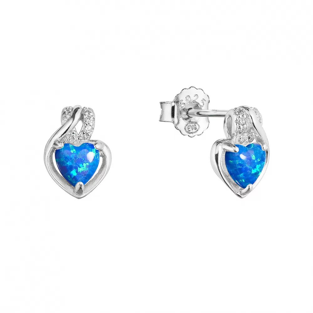 Strieborné náušnice srdca z modrého syntetického opálu a zirkónmi 11469.3 white