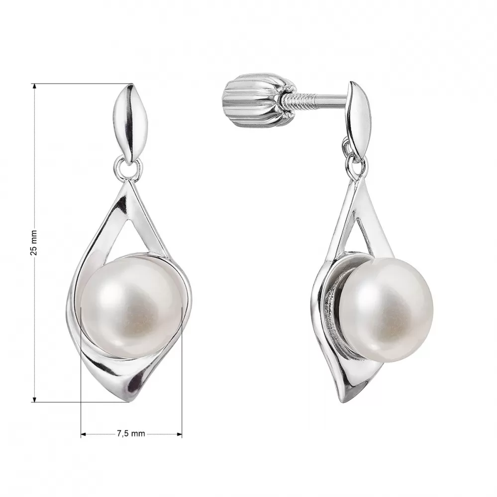 Strieborné náušnice s bielou riečnou perlou. Náušnice 21080.1B sú vyrobené zo striebra o rýdzosti 925/1000 a zaujmú predovšetkým vďaka riečnej perle kvality AA v bielej farbe. Šperk neobsahuje prídavok niklu, a tak ho môžu nosiť aj ľudia náchylní na alergické reakcie. Náušnice majú zapínanie na balónik, ktorý ich ochráni proti nechcenej strate.