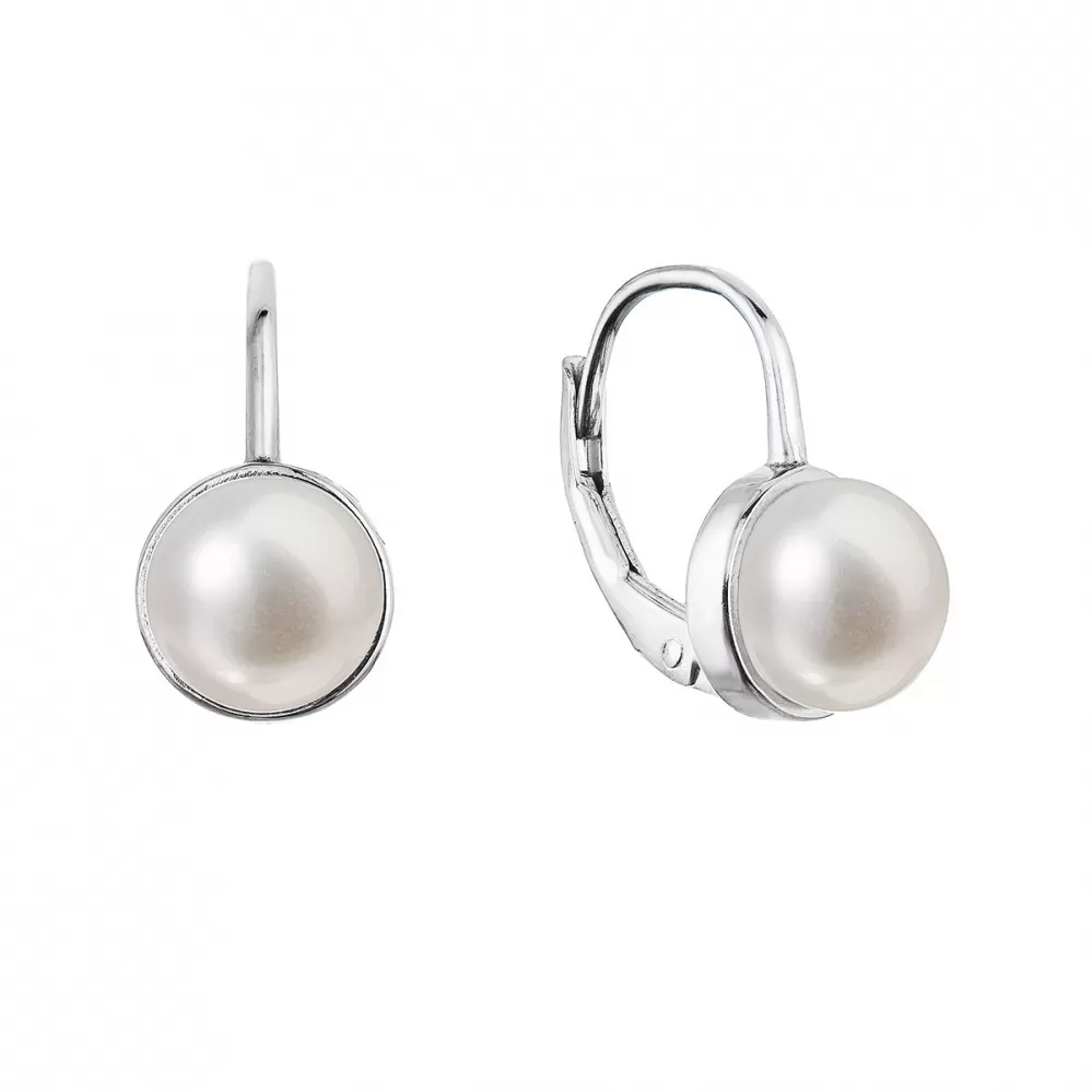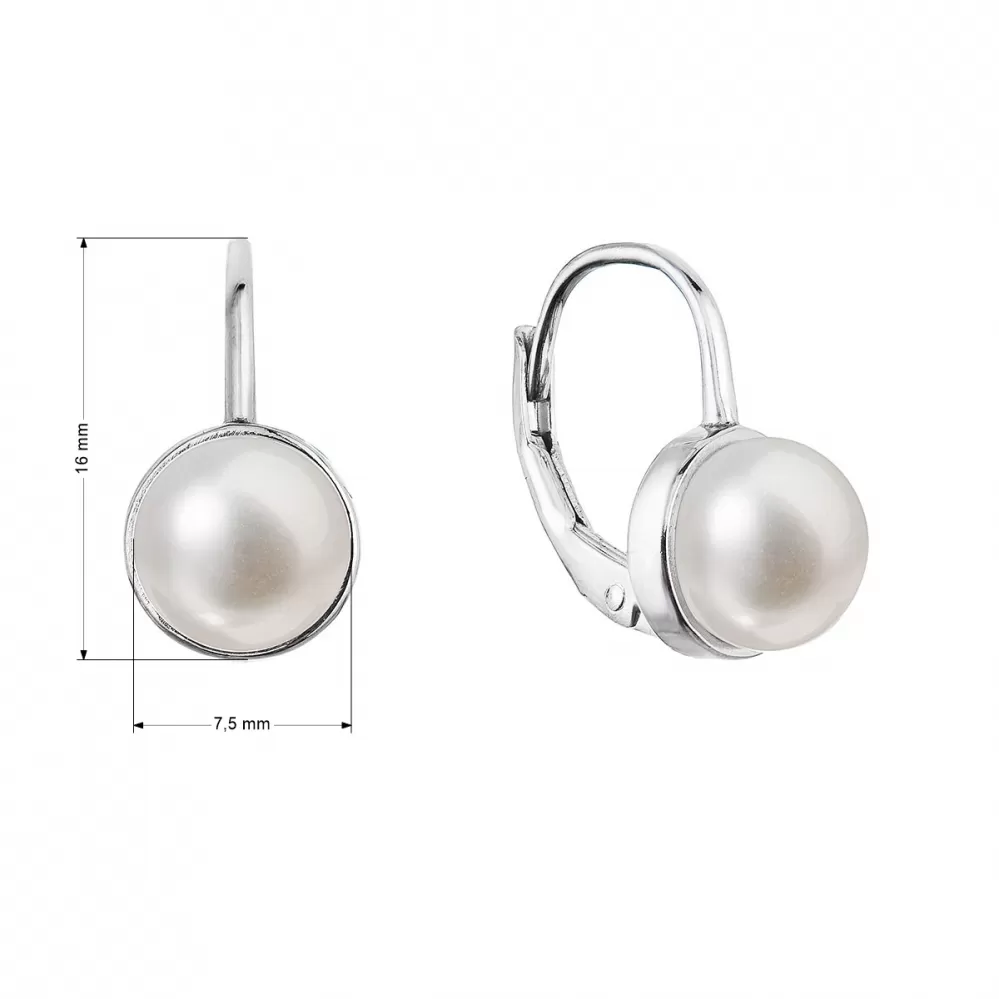 Strieborné náušnice visiace s bielou riečnou perlou 21079.1
