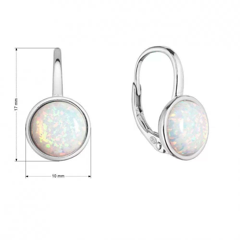 Strieborné náušnice visiace s bielym okrúhlym syntetickým opálom 11466.1 white