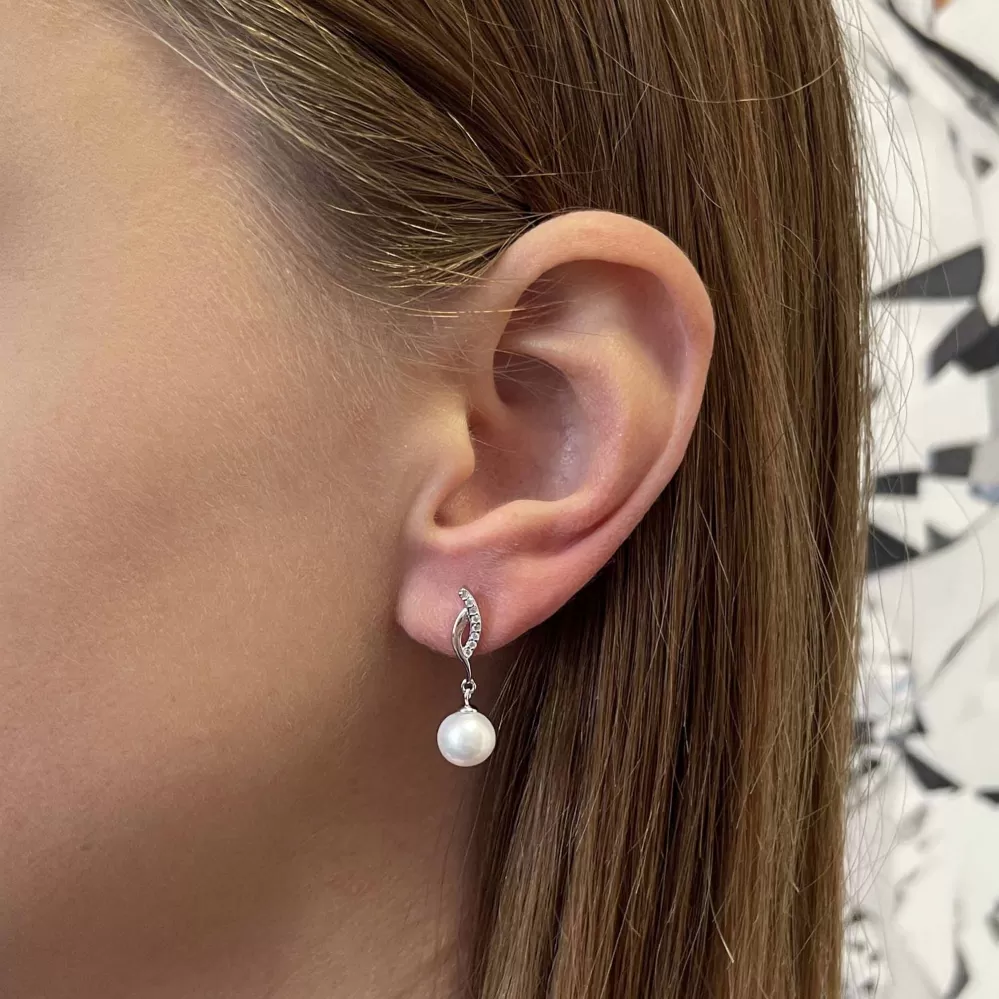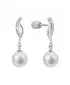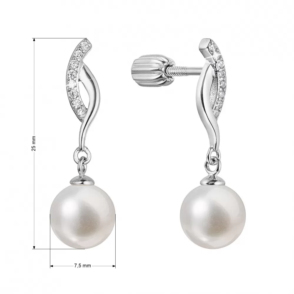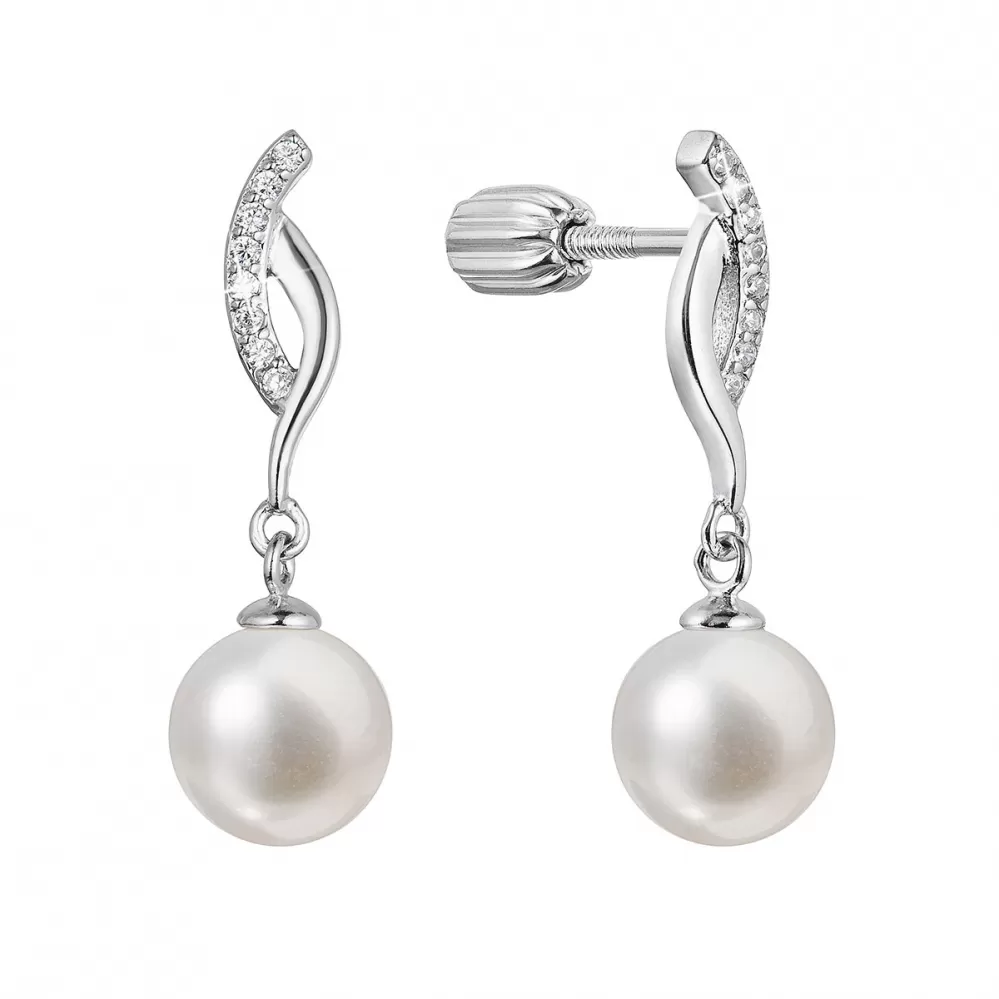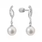 Strieborné náušnice s guľatou bielou riečnou perlou a zirkónmi zvýraznia Váš šarm.