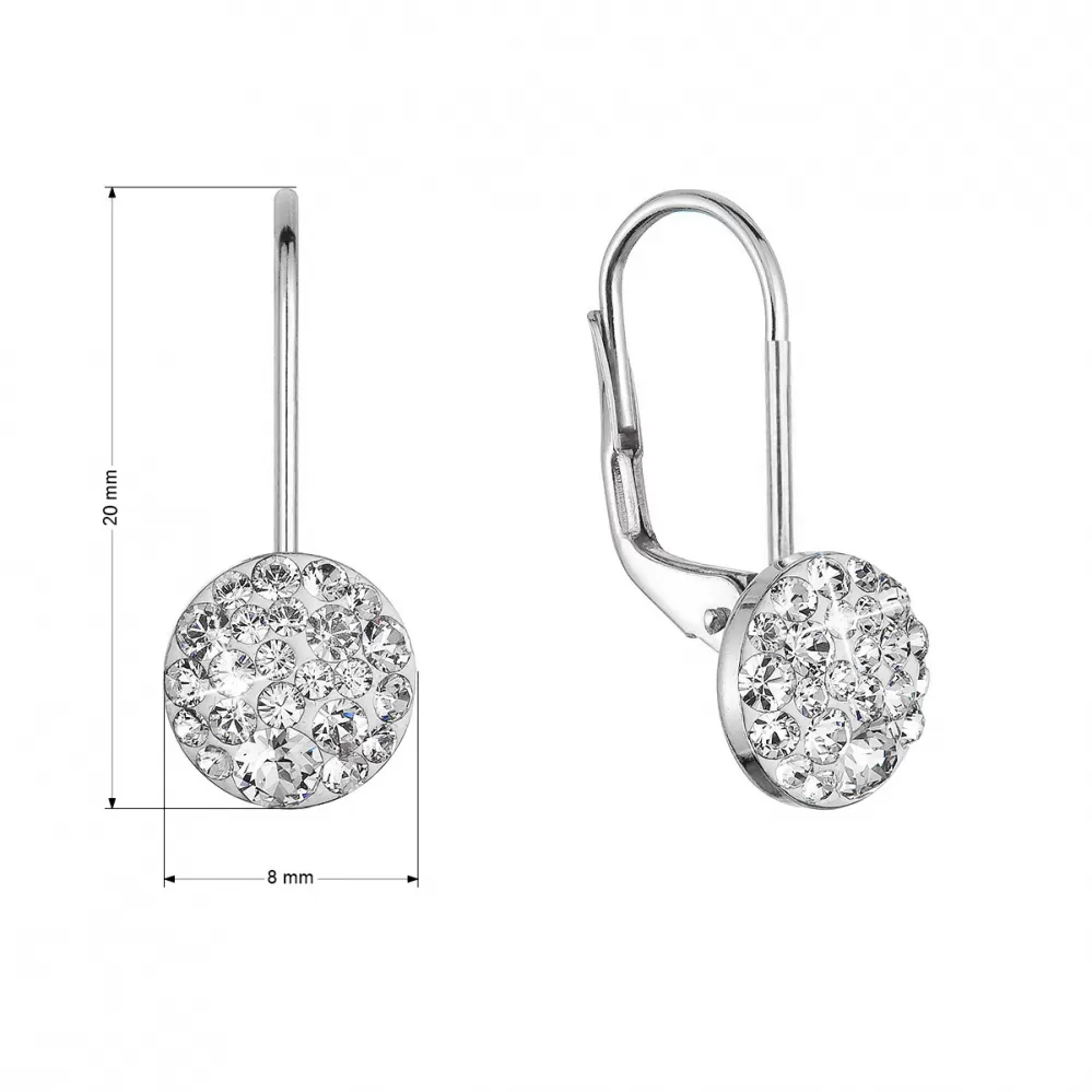 Strieborné náušnice visiace s kryštálmi Swarovski biele malé 31321.1 crystal