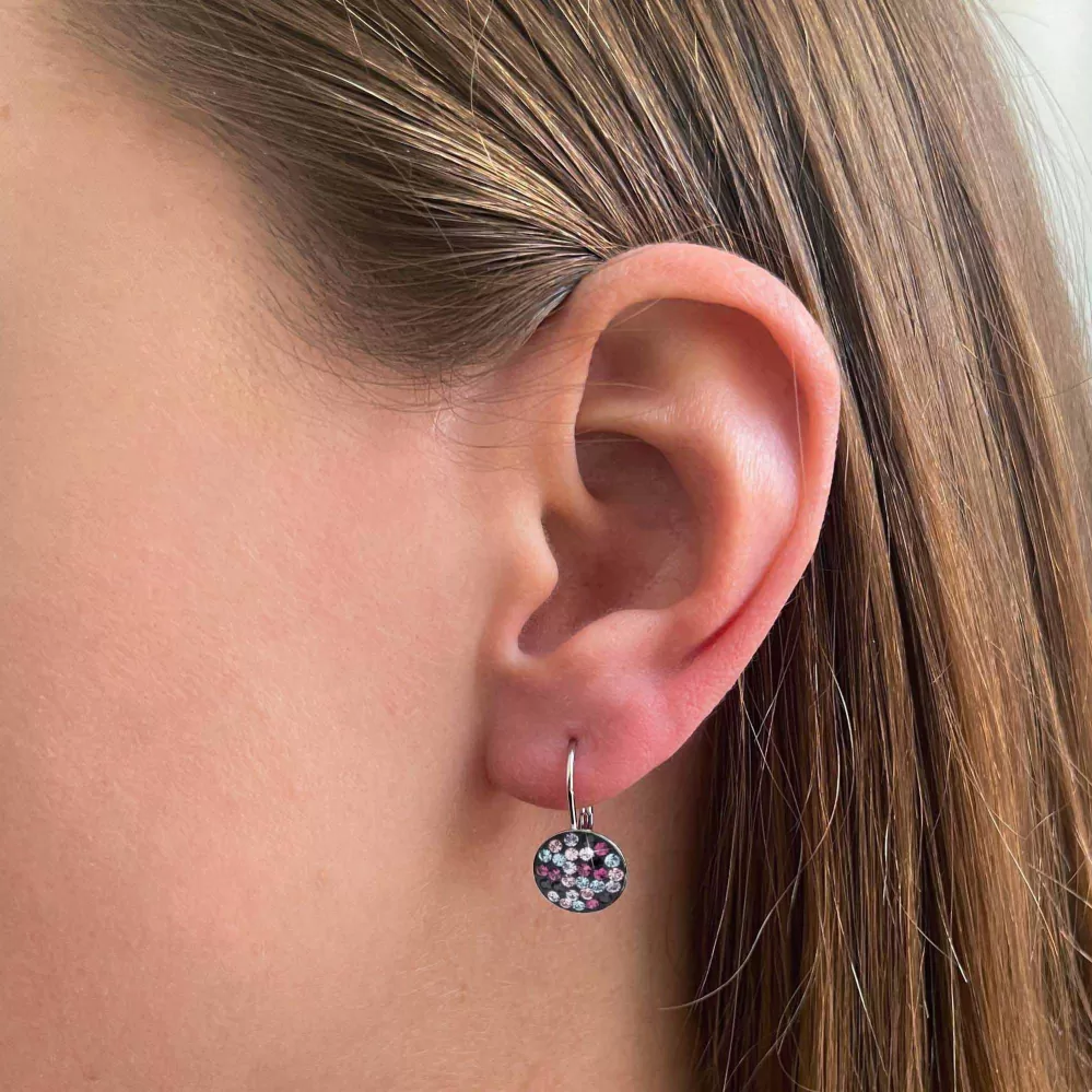 Visiace náušnice 31315.3 sú vyrobené zo striebra o rýdzosti 925/1000 s povrchovou úpravou ródiom a sú vysadené mnohými Swarovski kryštálmi vo farbách do ružovo fialova. Náušnice zapnete na klapku, ktorá ich spoľahlivo ochráni proti nechcenej strate. Do náušníc nie je pridaný nikel, a tak ich bez obáv môžu nosiť aj alergici.