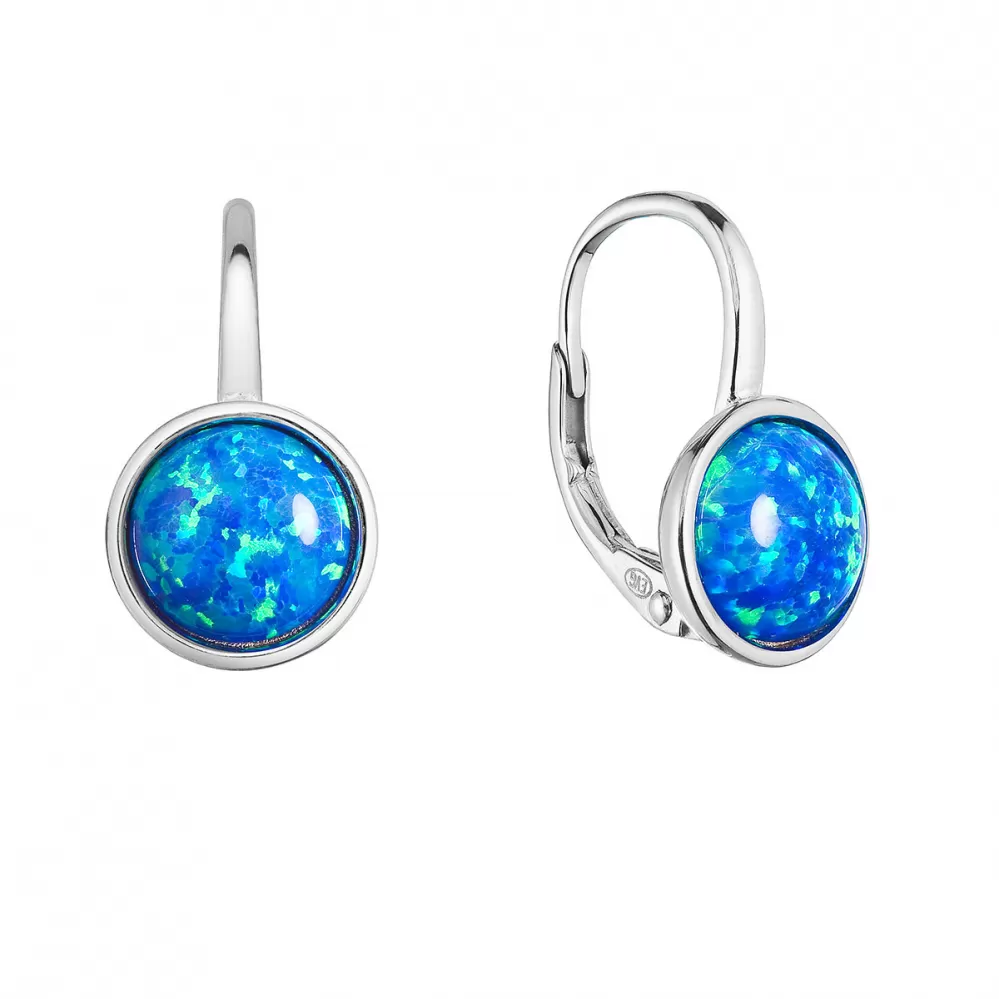 Strieborné náušnice visiace s modrým okrúhlym syntetickým opálom 11466.3 blue