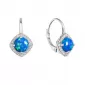 Visiace náušnice vyrábame zo striebra strong>rýdzosti 925/1000, ktoré je upravené ródiom. Vďaka ródiu je šperk odolný proti sčernaniu, zožltnutiu alebo poškriabaniu. Náušnice tvoria jeden okrúhly syntetický opál v modrej farbe a okolo opálu sú do tvaru kosoštvorca usadené biele zirkóny.