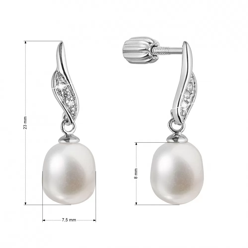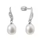 Strieborné náušnice visiace s oválnou riečnou perlou bielej 21092.1B