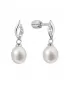 Strieborné náušnice visiace s riečnou perlou a zirkónmi biela 21104.1B