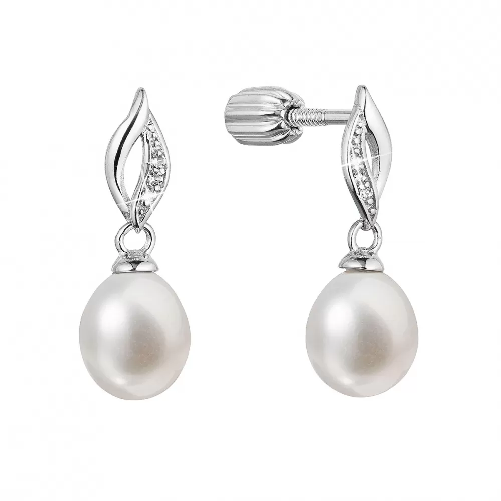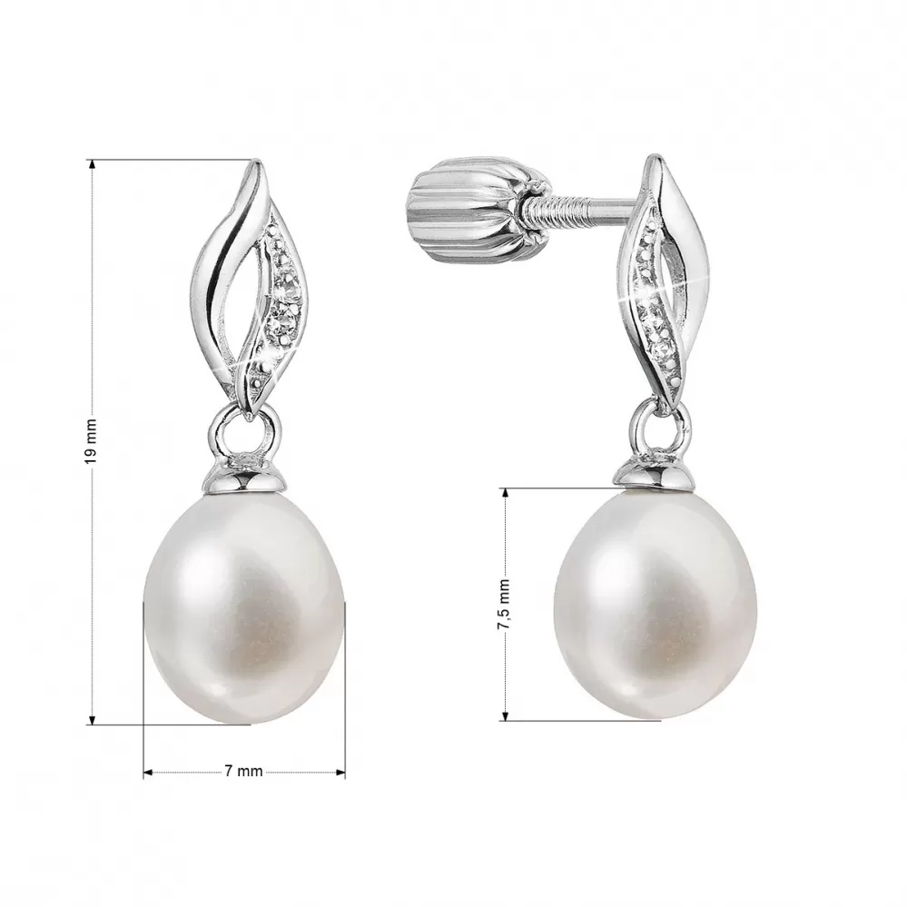 Náušnice 21104.1B sú vyrobené zo striebra s rýdzosťou 925/1000 a zaujmú predovšetkým vďaka bielej oválnej riečnej perle. Perly majú veľkosť 7,5 x 7 mm a kvality  A.  Náušnice sú navyše zdobené priezračnými zirkónmi, ktoré ich krásne rozžiaria. Šperk neobsahuje prídavok niklu, a tak ho môžu nosiť aj ľudia náchylní na alergické reakcie. Náušnice majú zapínanie na balónik, ktorý ich ochráni proti nechcenej strate.