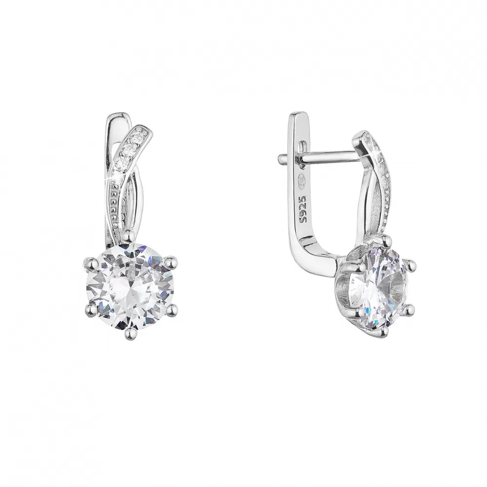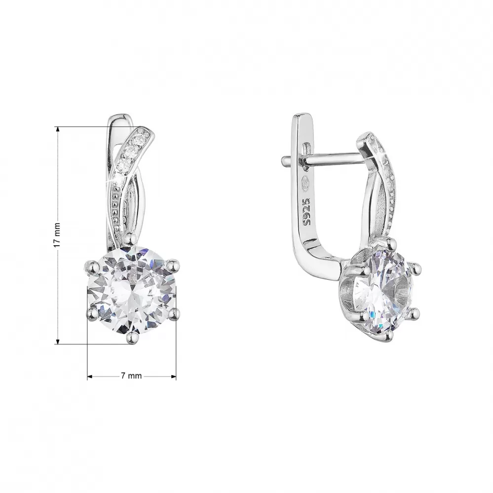 Visiace náušnice 11461.1 v tvare polkruhu sú vyrobené zo striebra s rýdzosťou 925/1000 s povrchovou úpravou ródiom a sú zdobené mnohými zirkónmi bielej farby. Vďaka ródiu je šperk odolný proti sčernaniu, zožltnutiu alebo poškriabaniu. Náušnice zapnete na ruský patent, ktorý ich ochráni proti nechcenej strate. Keďže do náušnícnie je pridaný nikel, môžu ich bez obáv nosiť aj alergici.