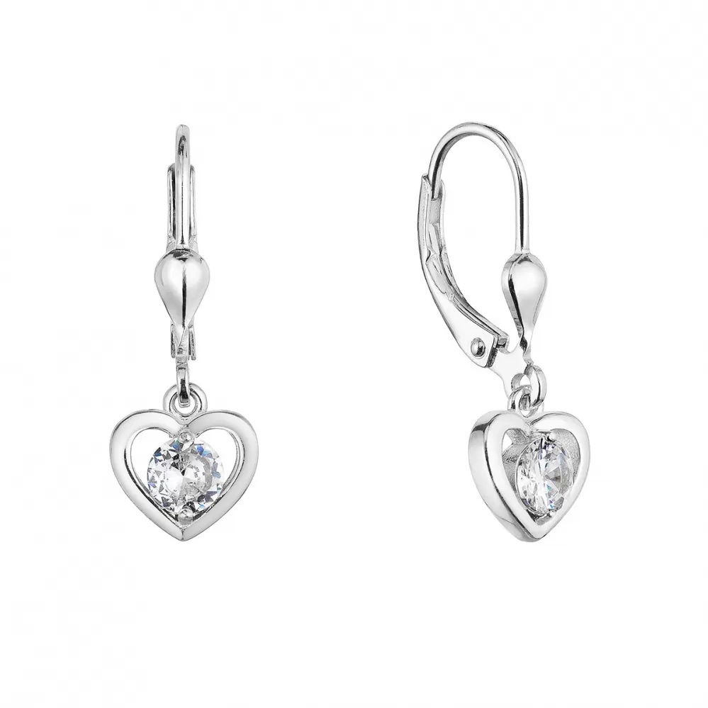 Visiace náušnice v tvare srdca 11459.1 sú vyrobené zo striebra s rýdzosti 925/1000 s povrchovou úpravou ródiom a sú zdobené zirkónom v bielej farbe. Náušnice majú zapínanie  na klapku, ktorá ich spoľahlivo ochráni proti nechcenej strate. Keďžešperk neobsahuje žiadny nikel, môžu ho nosiť aj alergici.