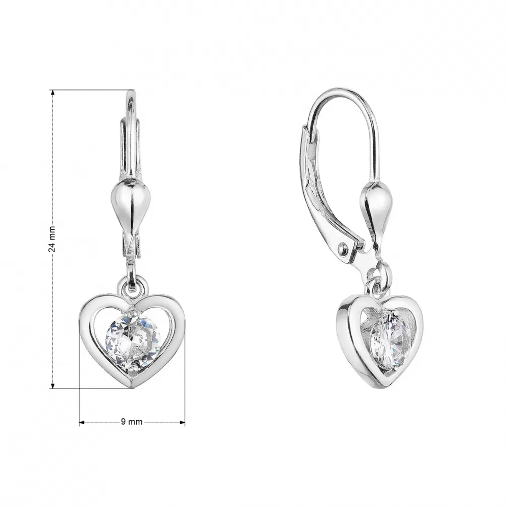 Strieborné náušnice visiace srdiečka so zirkónom 11459.1