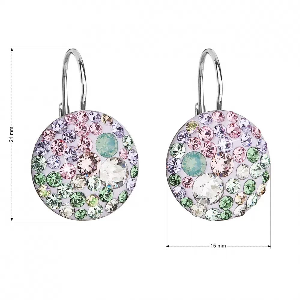 Parametre strieborných náušníc visiace s kryštálmi Swarovski mix farieb okrúhle 31176.3 sakura