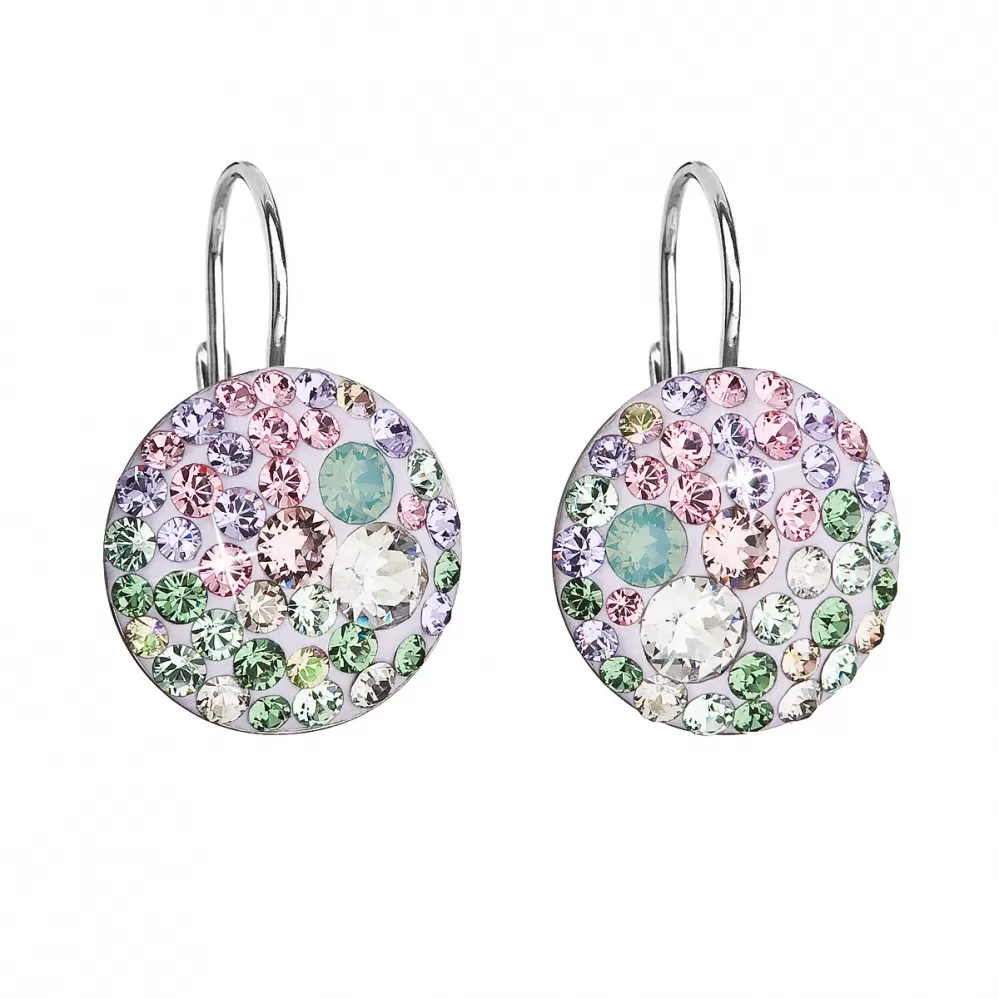 Strieborné náušnice visiace s kryštálmi Swarovski mix farieb okrúhle 31176.3 sakura