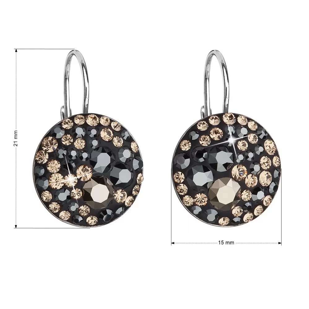 Parametre strieborných náušníc visiace s kryštálmi Swarovski mix farieb okrúhle 31176.4 colorado