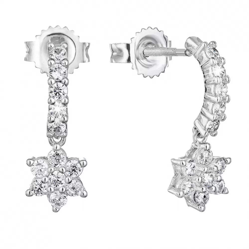 Strieborné náušnice parkovisko s zirkónom biely kvet 11331.1