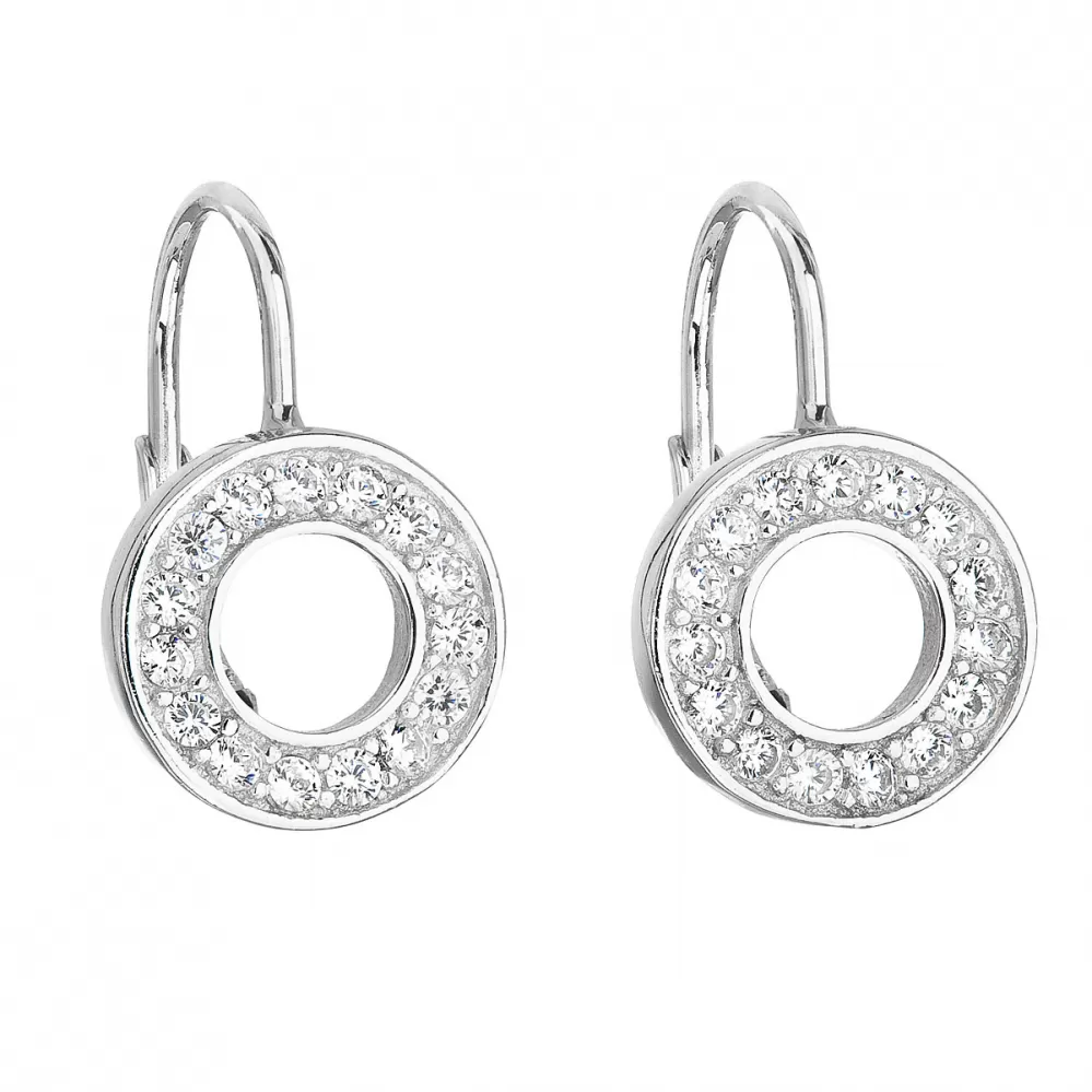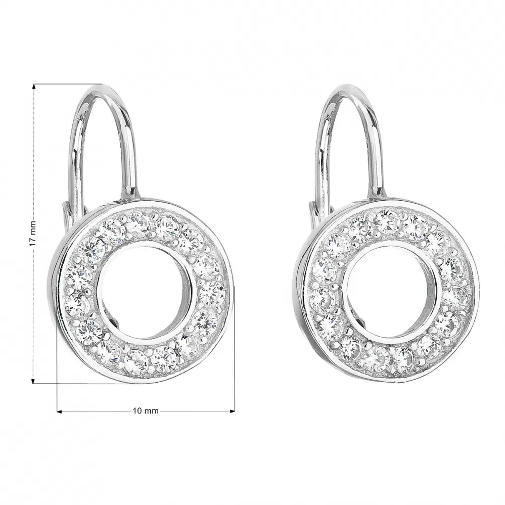 Parametre strieborných visiacich náušníc so zirkónom v bielej farbe 11184.1
