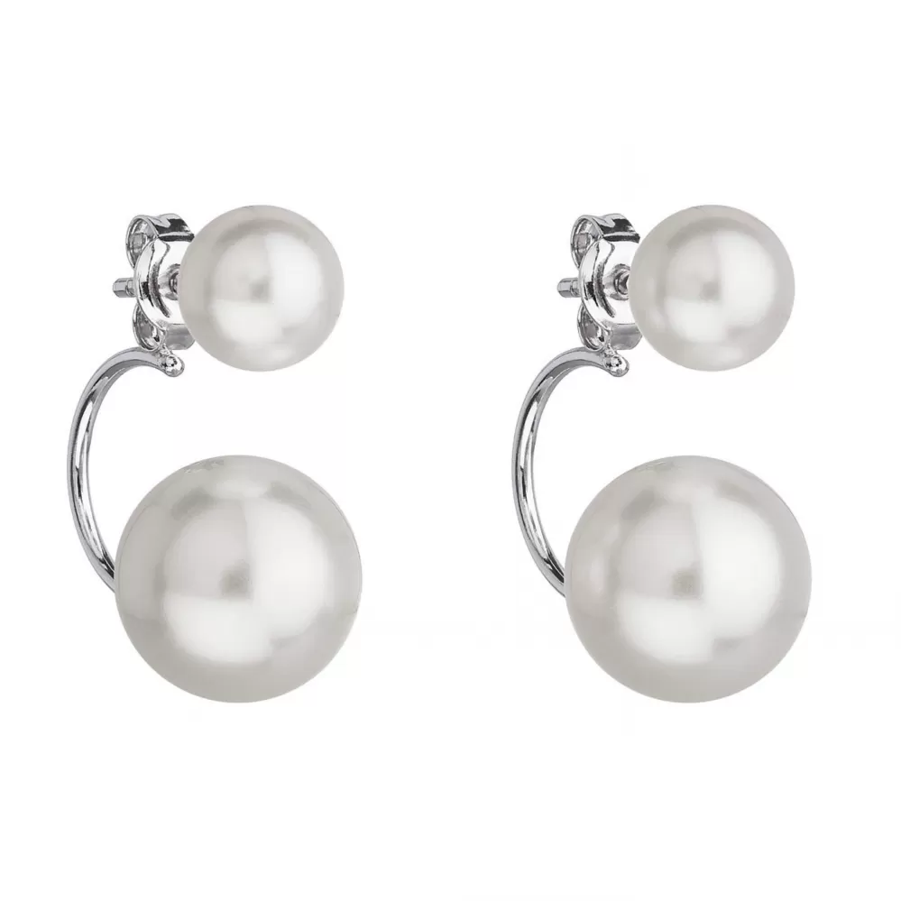 Strieborné náušnice dvojité s perlou Preciosa biele okrúhle 31177.1