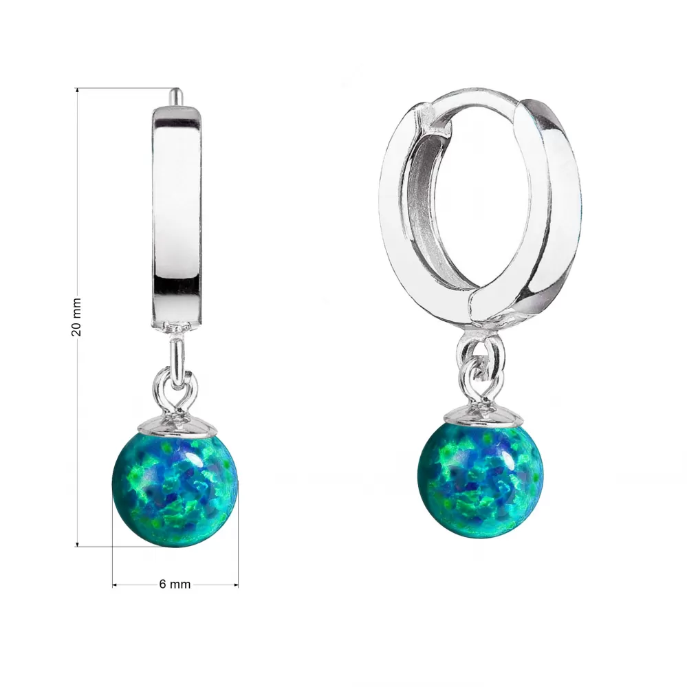 Visiace náušnice v tvare krúžku 11404.3 sú vyrobené zo striebra s rýdzosťou 925/1000 s povrchovou úpravou ródiom a sú zdobené okrúhlym syntetickým opálom v zelenej barve. Náušnice sa zapínajú na krúžok. Do náušnícnie je pridaný nikel, a tak ich bez obáv môžu nosiť aj alergici.