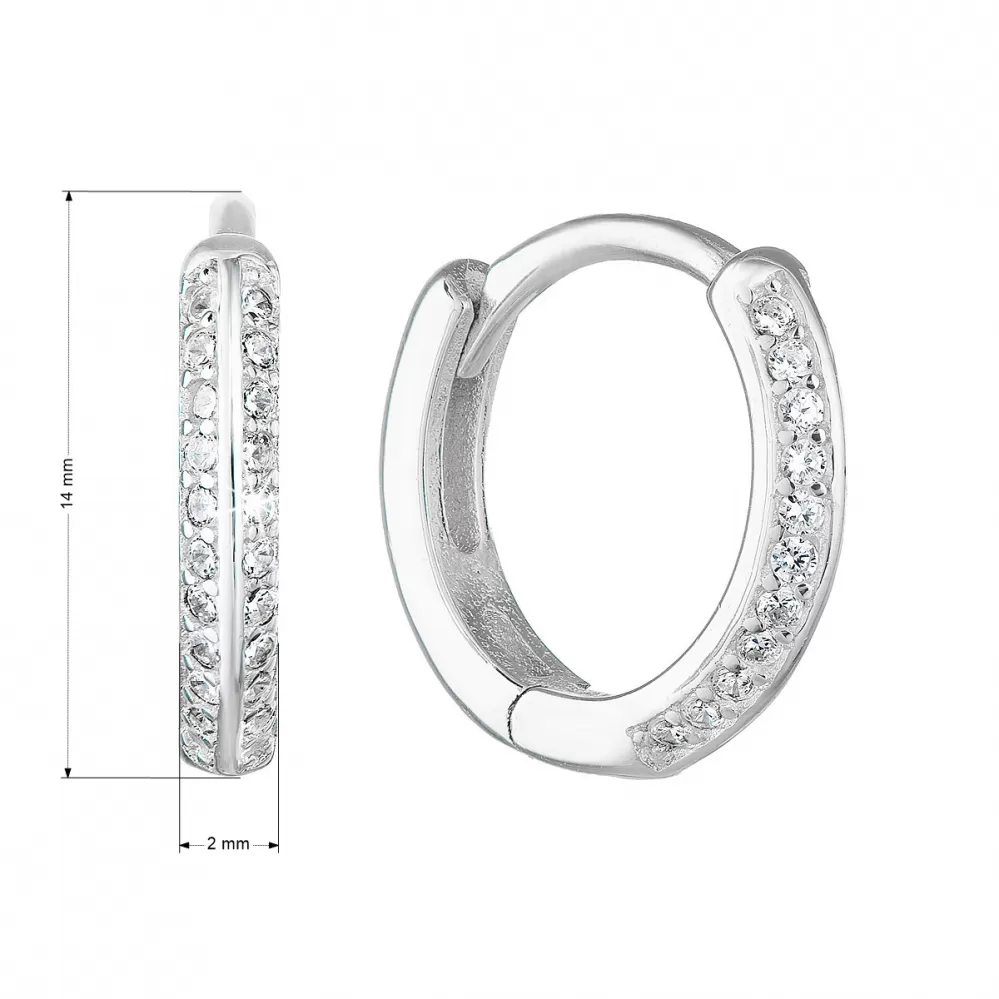 Parametre strieborných náušníc kruhy so zirkónom v bielej farbe 11253.1