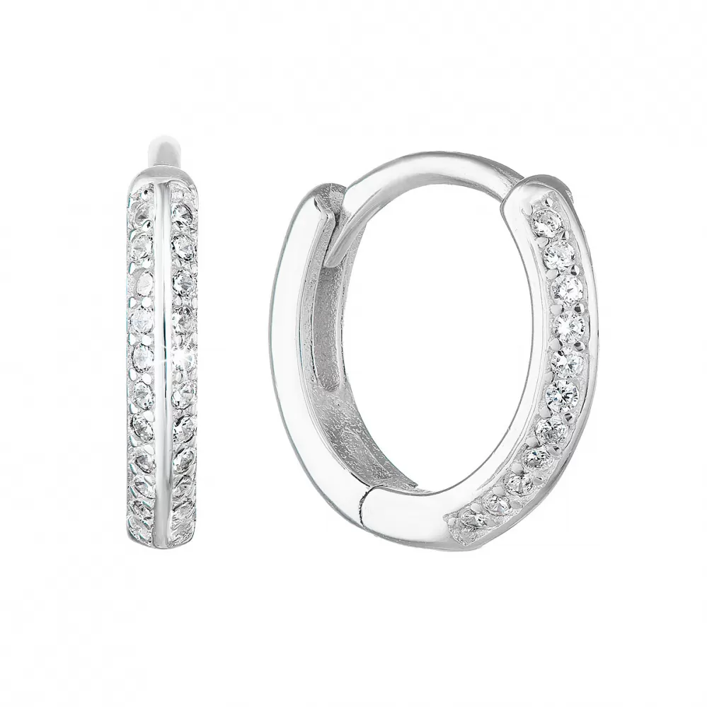 Strieborné náušnice kruhy so zirkónom v bielej farbe 11253.1