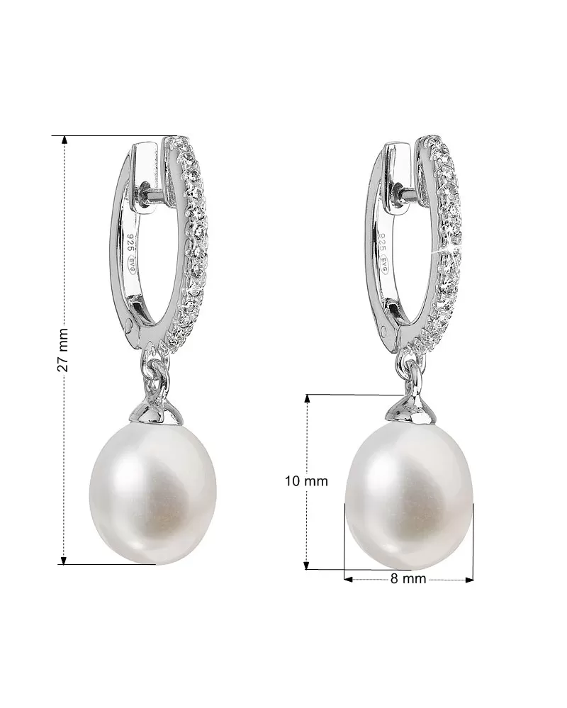 Parametre stribrných visiacich náušníc s bielou riečnou perlou 21002.1