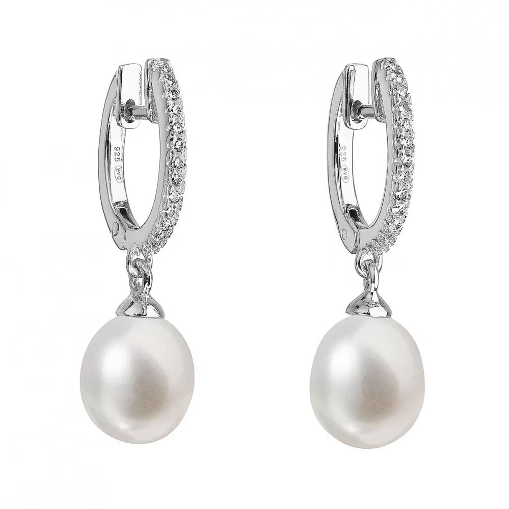 Strieborné náušnice visiace s bielou riečnou perlou 21002.1