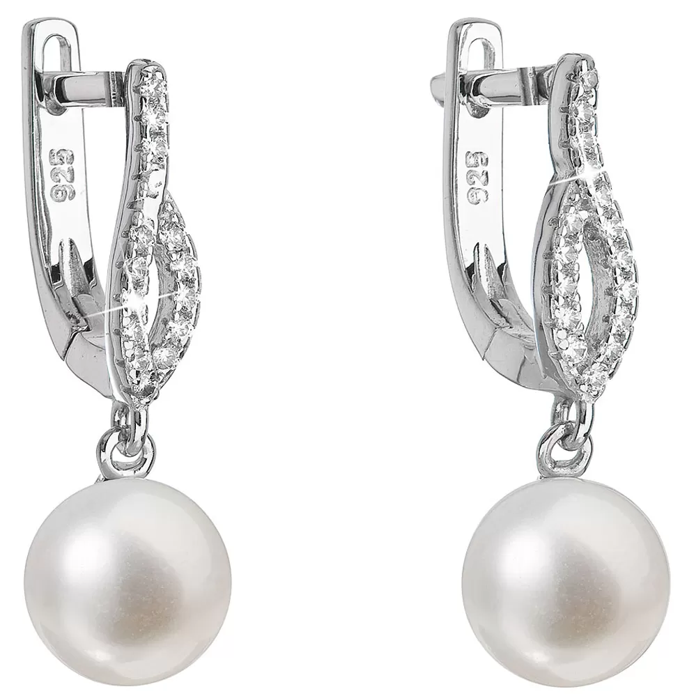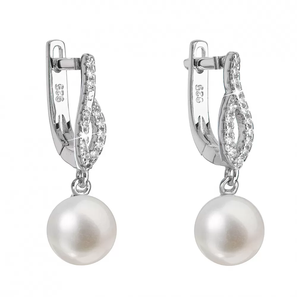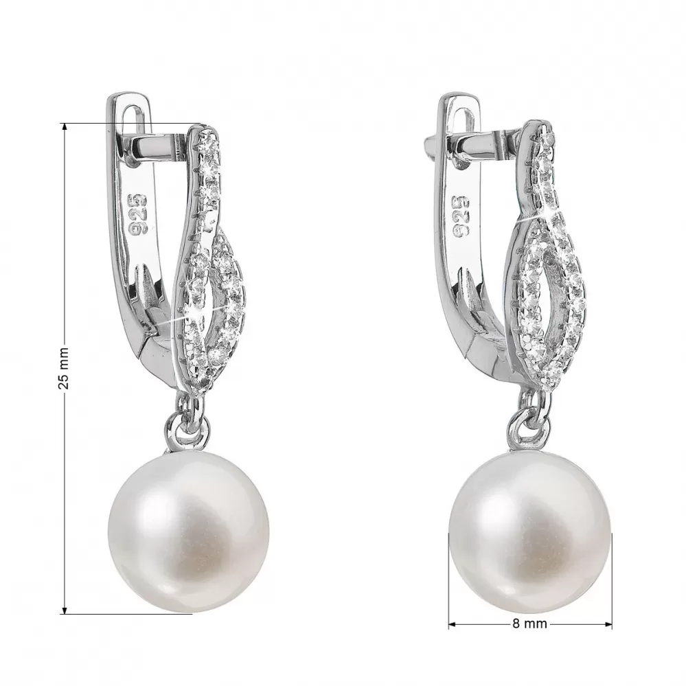 Strieborné náušnice visiace s bielou riečnou perlou 21027.1
