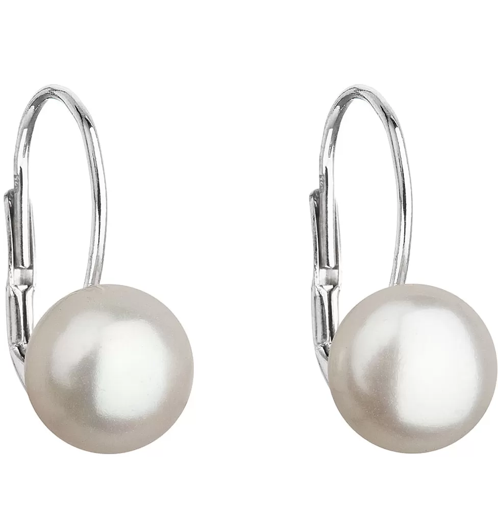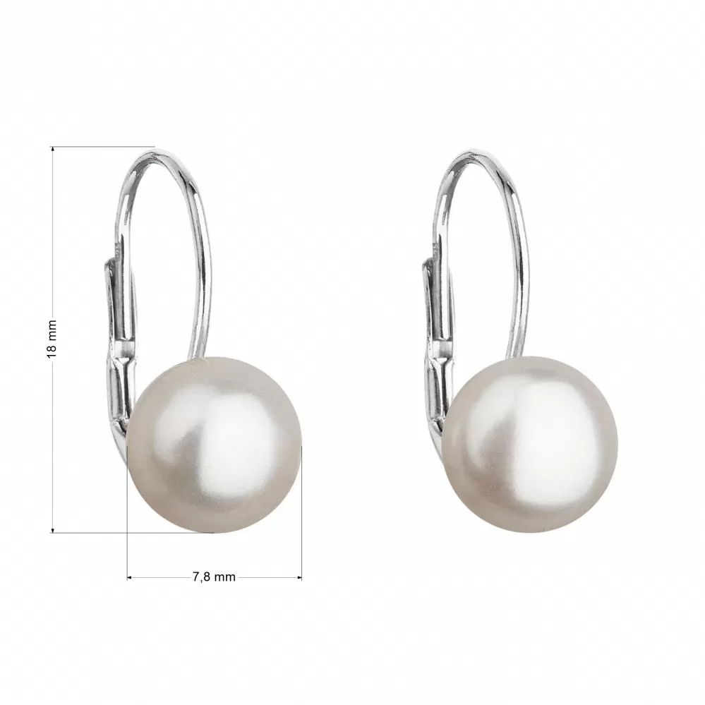Strieborné náušnice visiace s bielou riečnou perlou 21044.1
