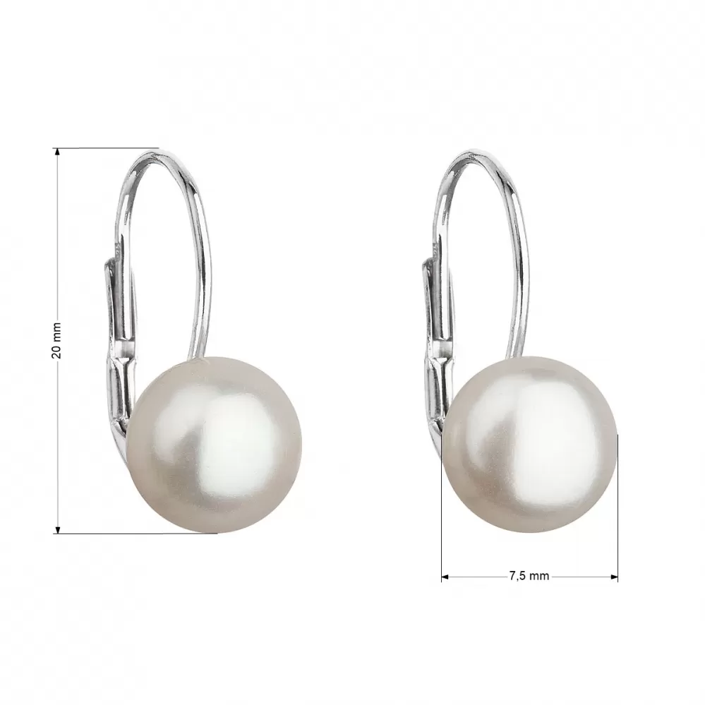 Parametre strieborných visiacich náušníc s bielou riečnou perlou 21044.1