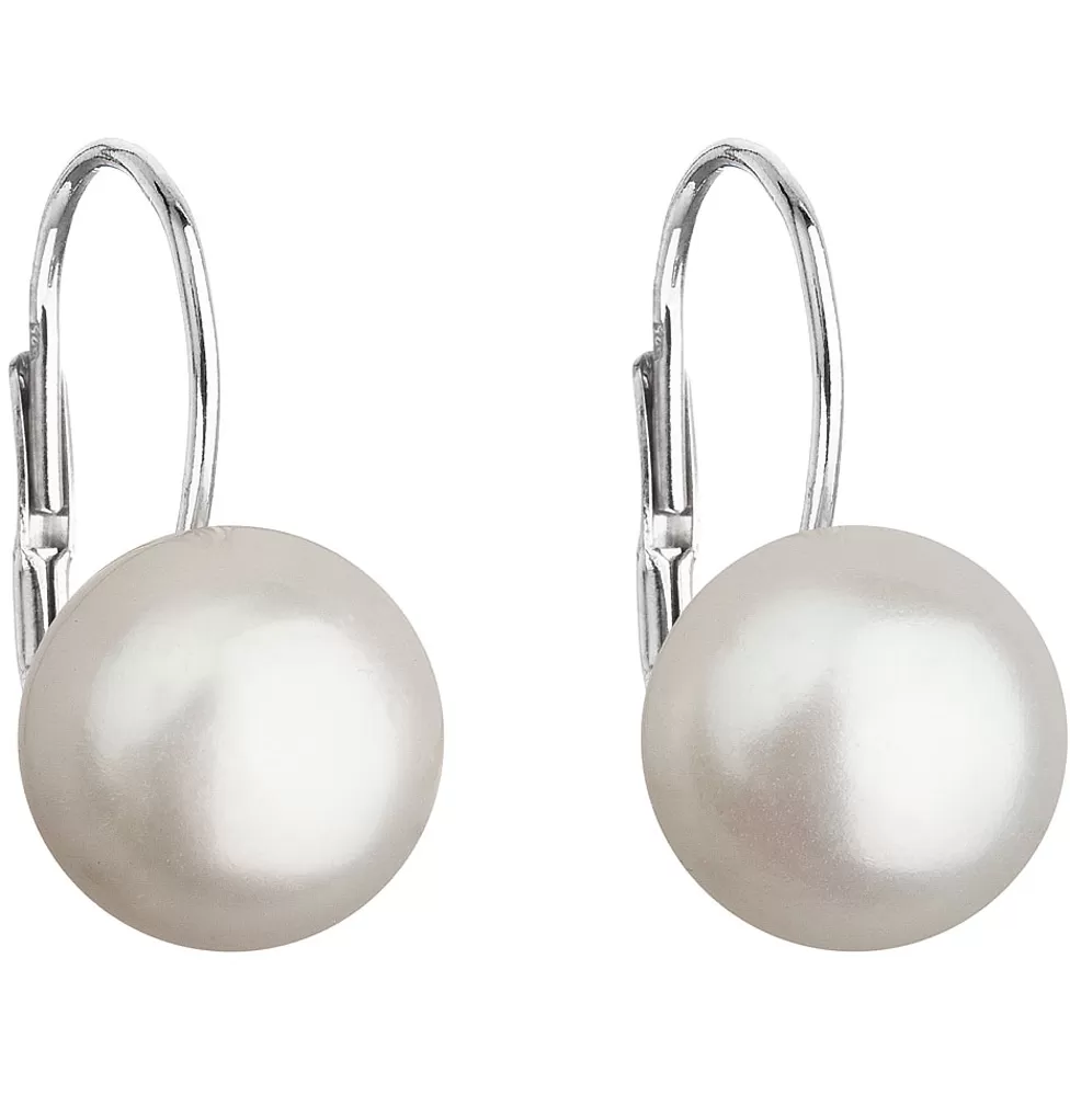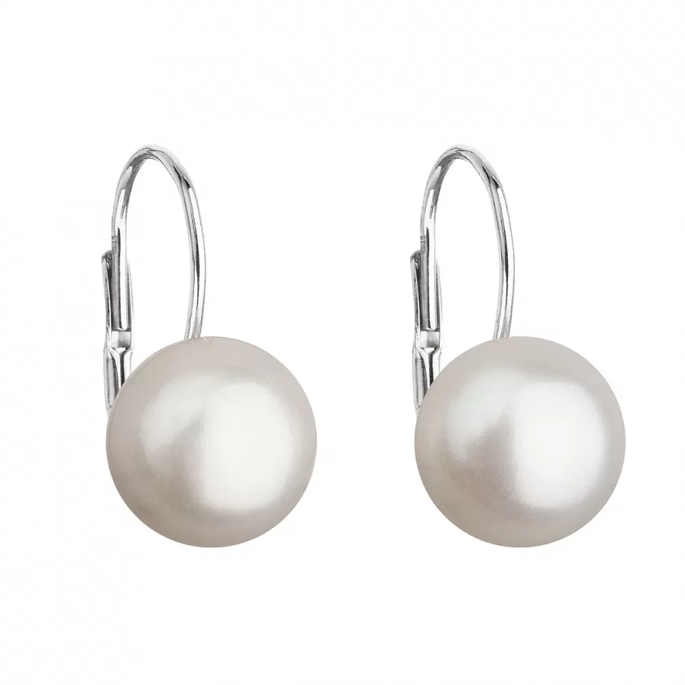 Strieborné náušnice visiace s bielou riečnou perlou 21045.1