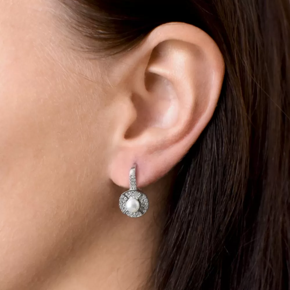 S perlovými náušnicami zdobenými mnohými priezračnými zirkónmi zažiarite, či už nimi doplníte svoj každodenný outfit alebo šaty na ples.